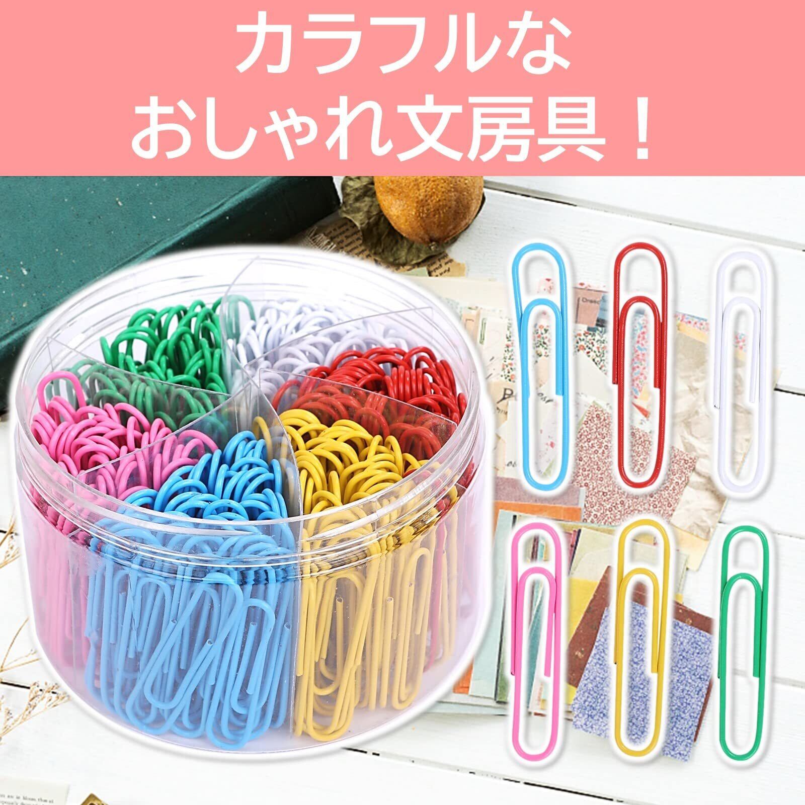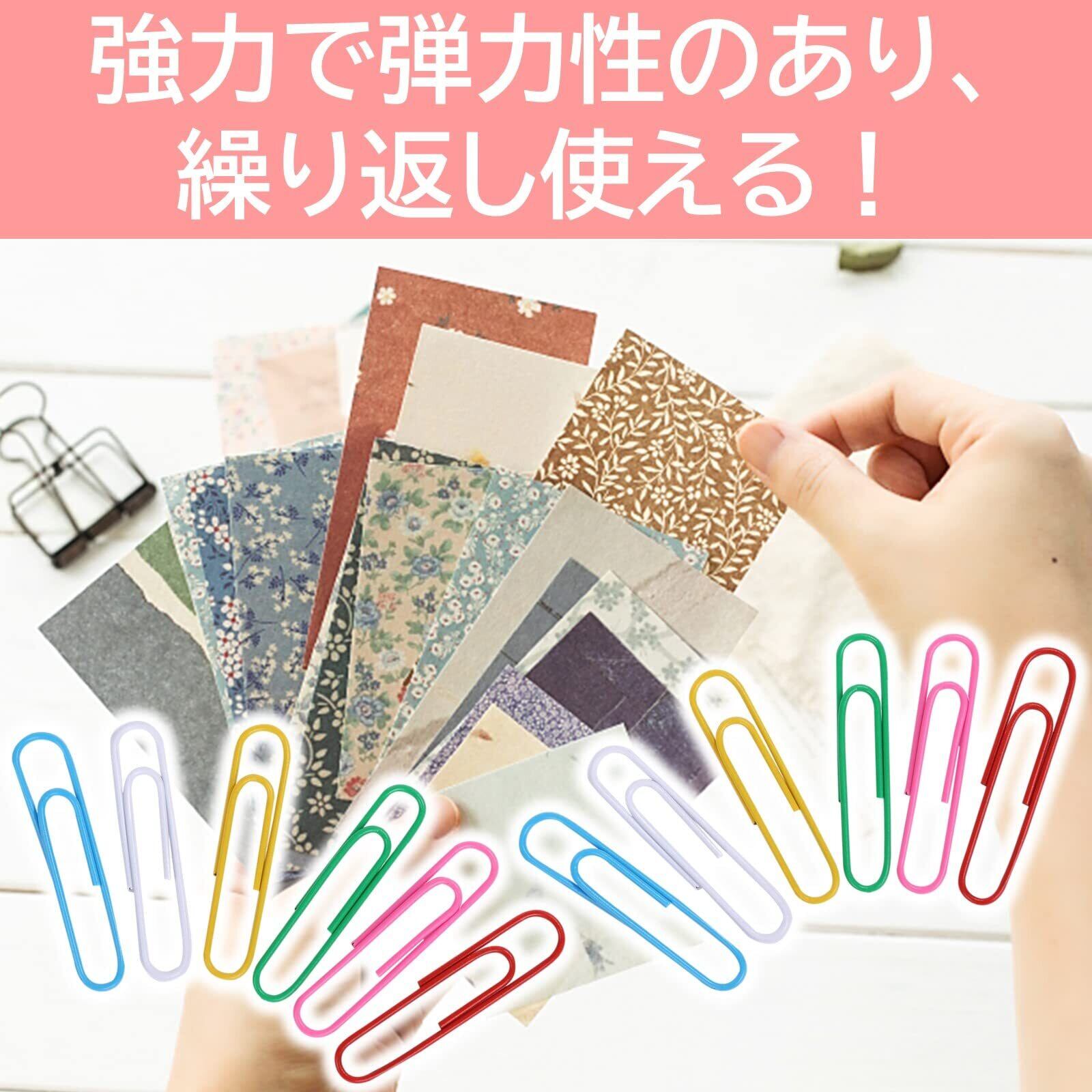 ルボナリエ カラーゼムクリップ 大容量 カラークリップ ファイル分類 ゼムクリップケース ゼムクリップ ペーパークリップ ブックマーク 大 特大 かわいい おしゃれ (カラフル 33mm x 500本)