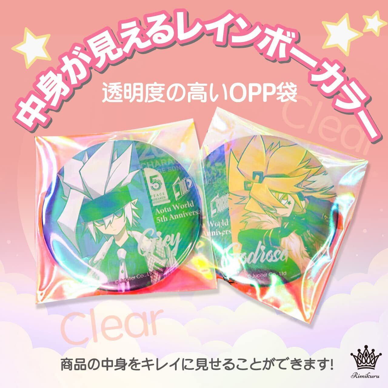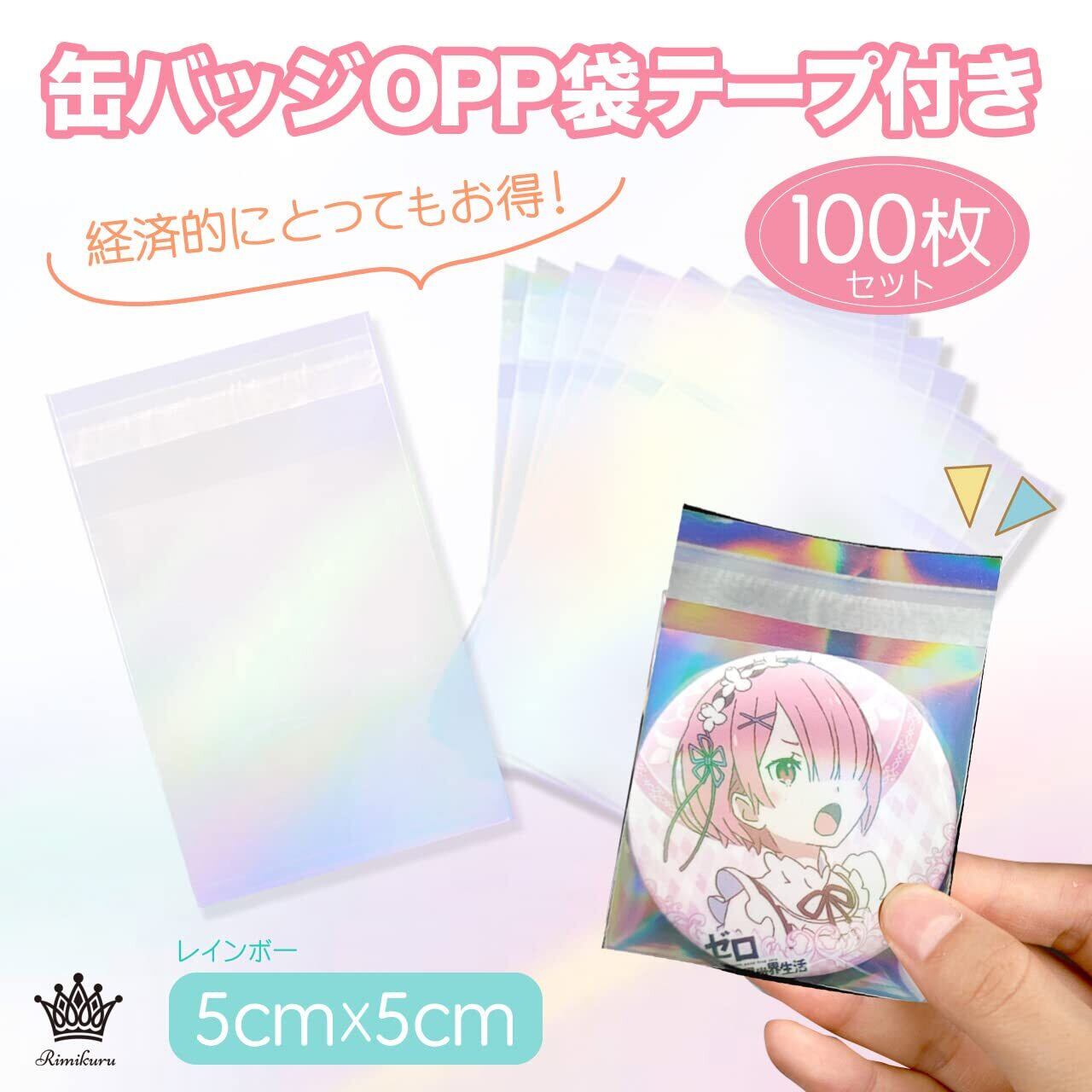 【在庫セール】Rimikuru 缶バッジ スリーブ 袋 100枚セット 透明 テープ付き 収納 梱包 缶バッチ 缶バッヂ 缶バ (5cm×5cm・レインボー)