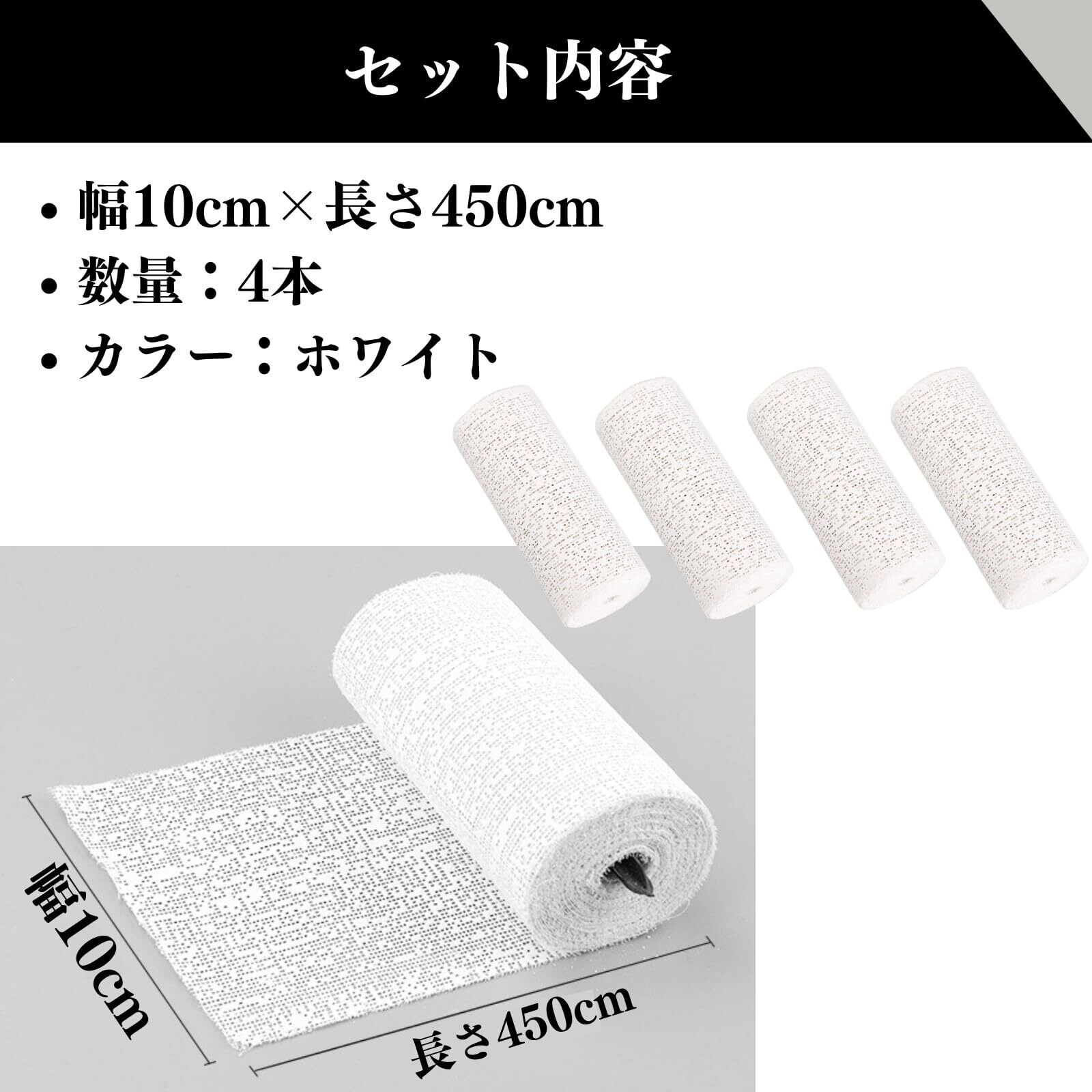 【セット内容】●幅10cm×長さ450cm ●数量:4本 ●カラー:ホワイト 注意:粉状の石膏がでますので使用の際は注意してください。