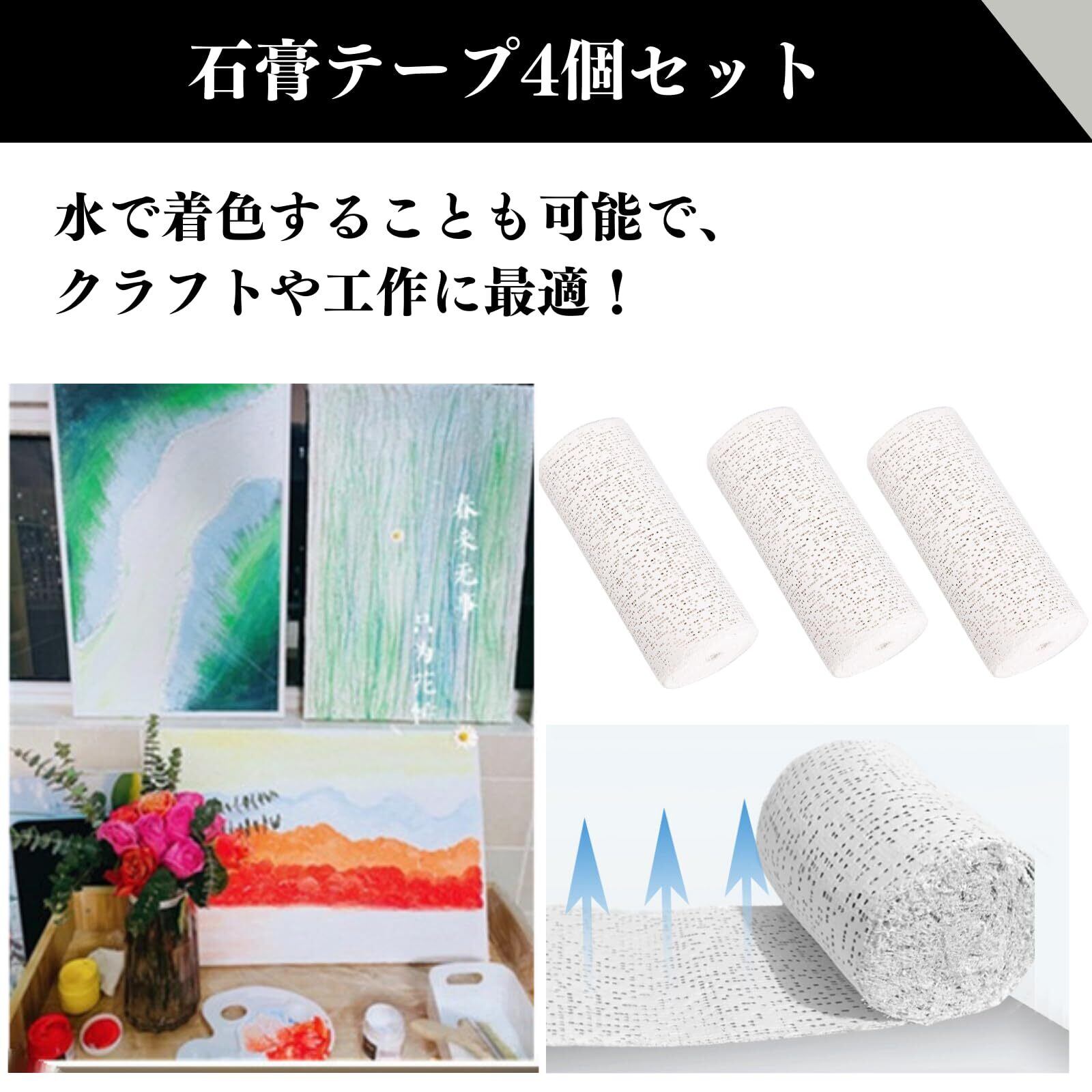 【柔軟性と頑丈さを兼ね備え】水と混ぜると硬化する性質を持つ石膏をガーゼ布に塗布したテープは、強度が高まりつつ柔軟性を保ち、頑丈な仕上がりになります。水に浸して貼り付け、20分から30分で硬化が始まります。