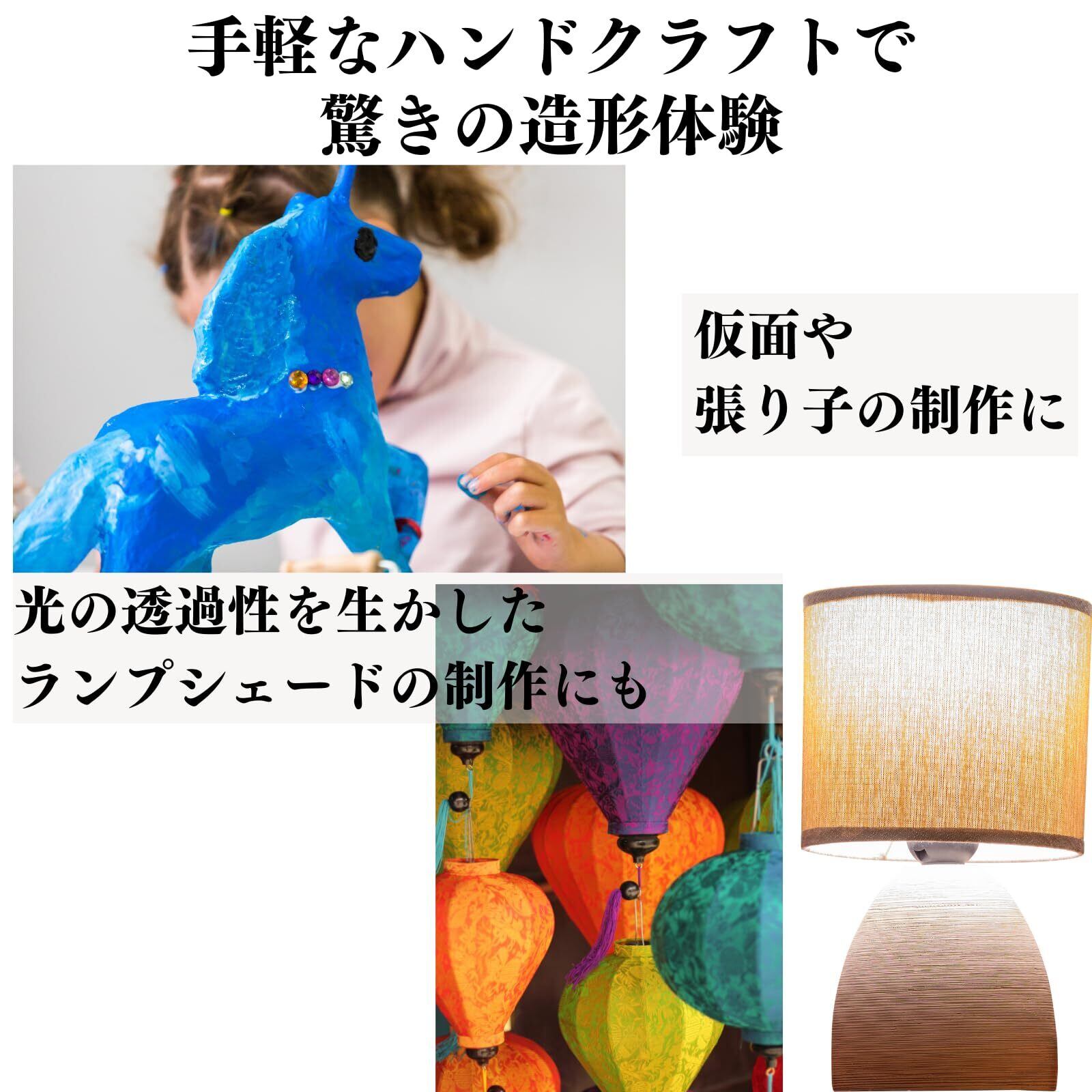 【手軽なハンドクラフトで、驚きの造形体験】切って貼るだけの簡単な作業で、仮面や張り子の制作はもちろん、光の透過性を生かしたランプシェードの制作にもご利用いただけます。