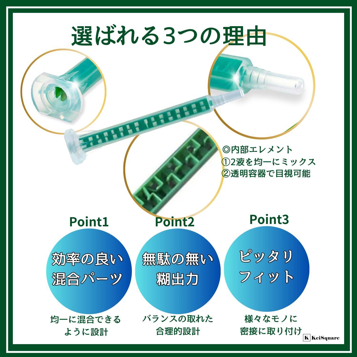 KeiSquare ミキシングノズル メグミックス 互換 2液 混合 ミックスノズル パーツ 修理 補修 修復 板金 接着 (100本セット)