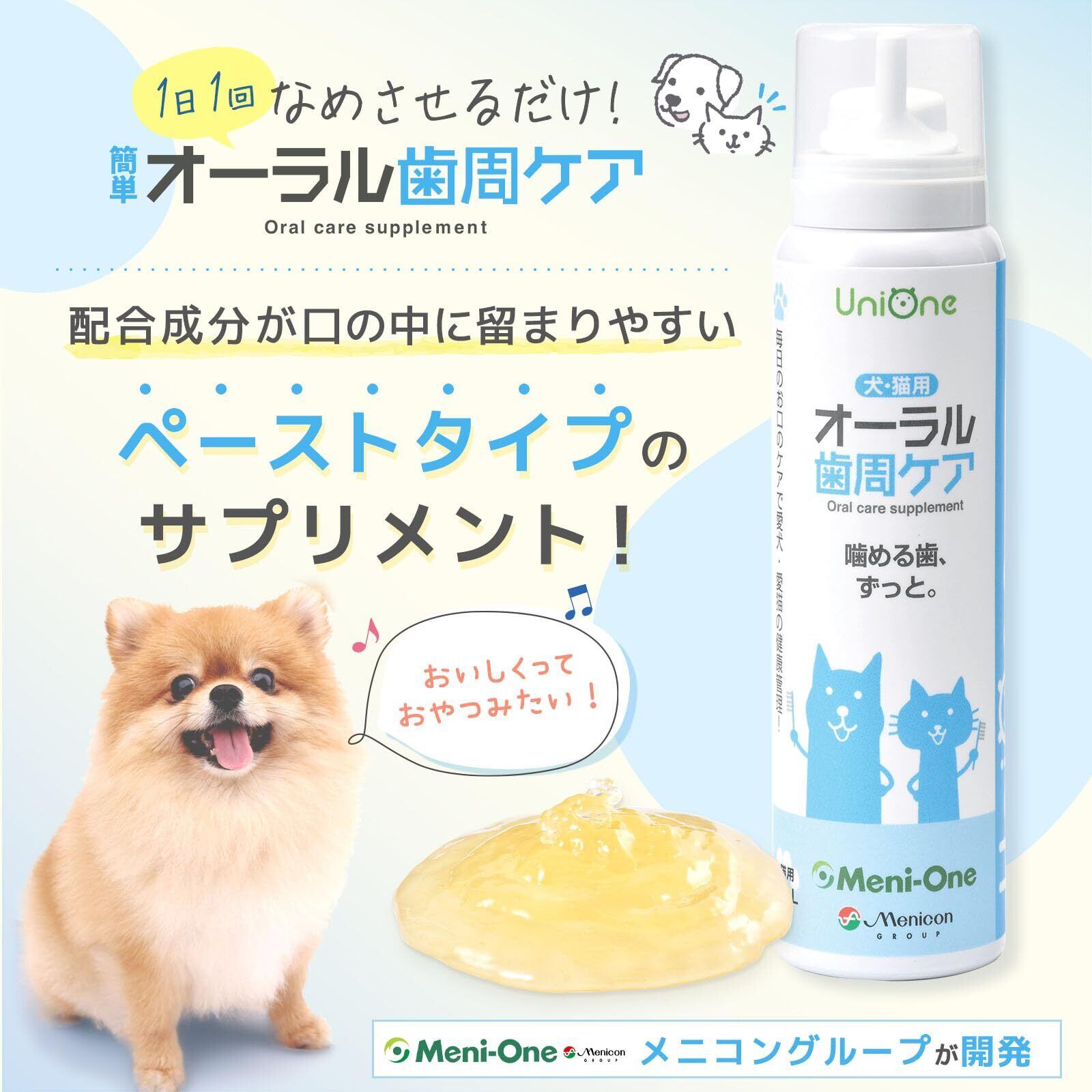 UniOne オーラル 歯周ケア ペット 歯磨き 犬 猫 サプリ サプリメント お口の健康 歯周病ケア 60ml 口腔ケア お口の健康維持 口臭 歯周病 グロビゲン 乳酸菌 ラクトフェリン ドックフード メニワン ユニワン