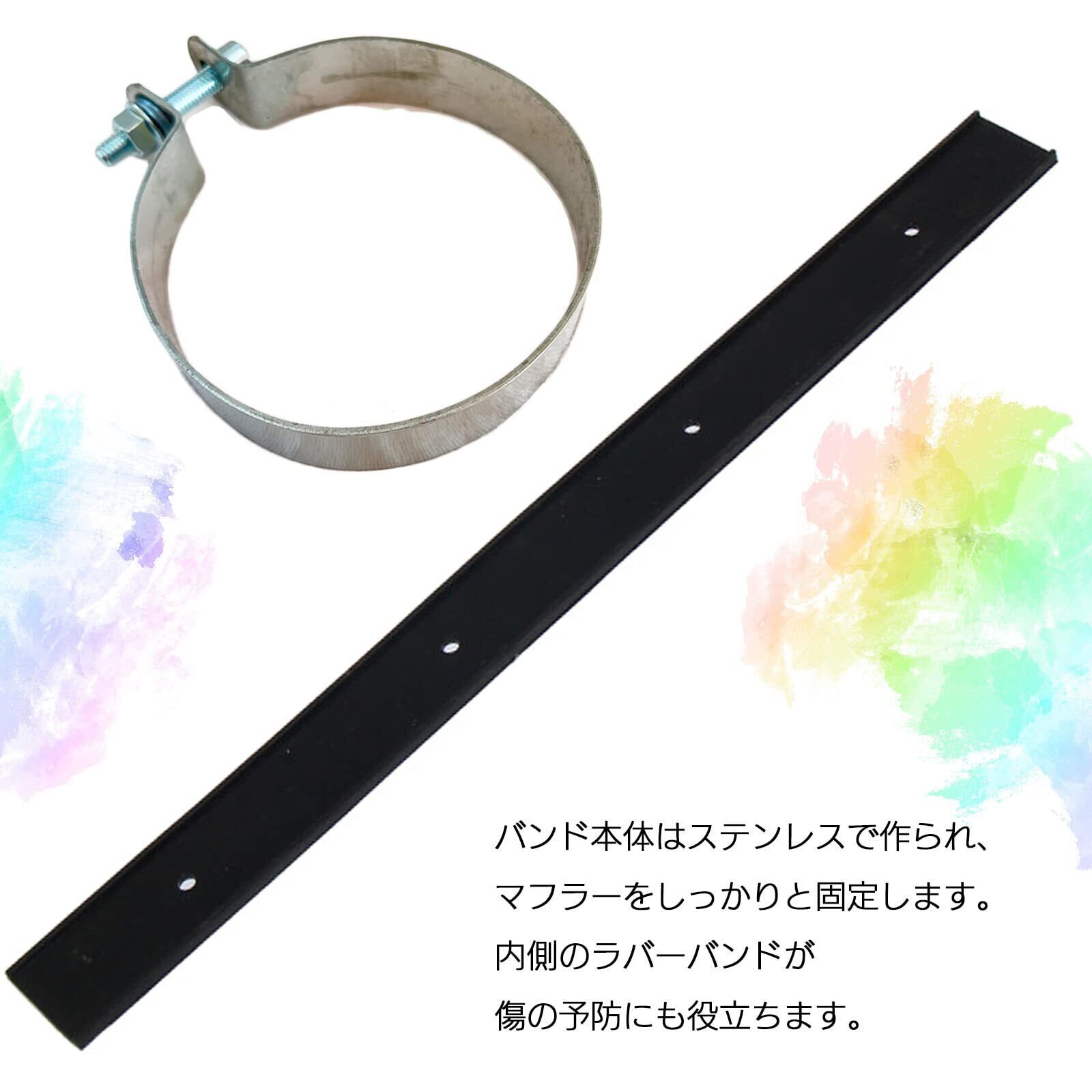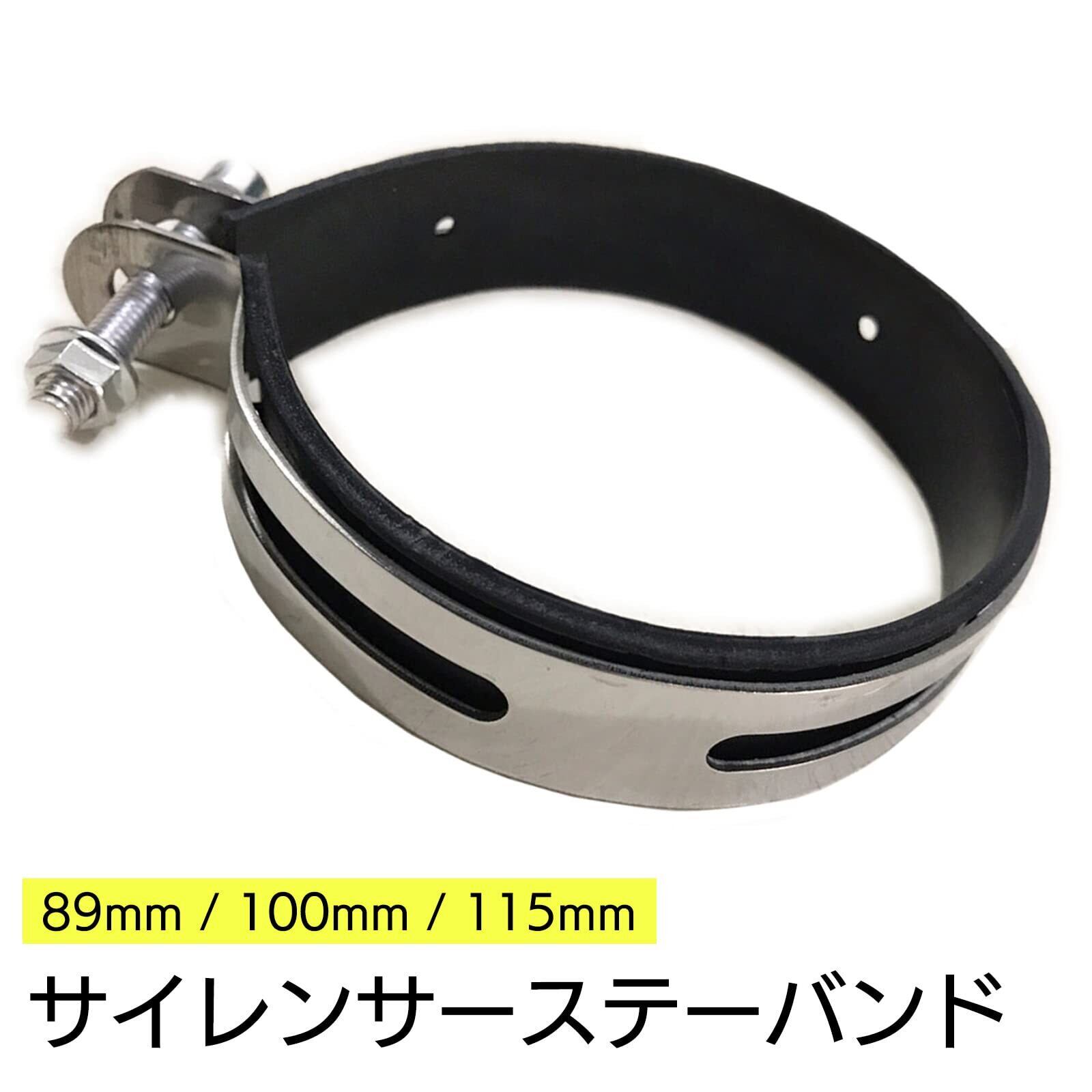 バンド内径は約89mmのほか、100(サイレンサーバンド100)、115mm(サイレンサーバンド 110)などをご用意。ステンレス素材のため、サビに強く、長期使用に適しています。内側のクッション材が、マフラーとの接触部分をやさしく保護します。