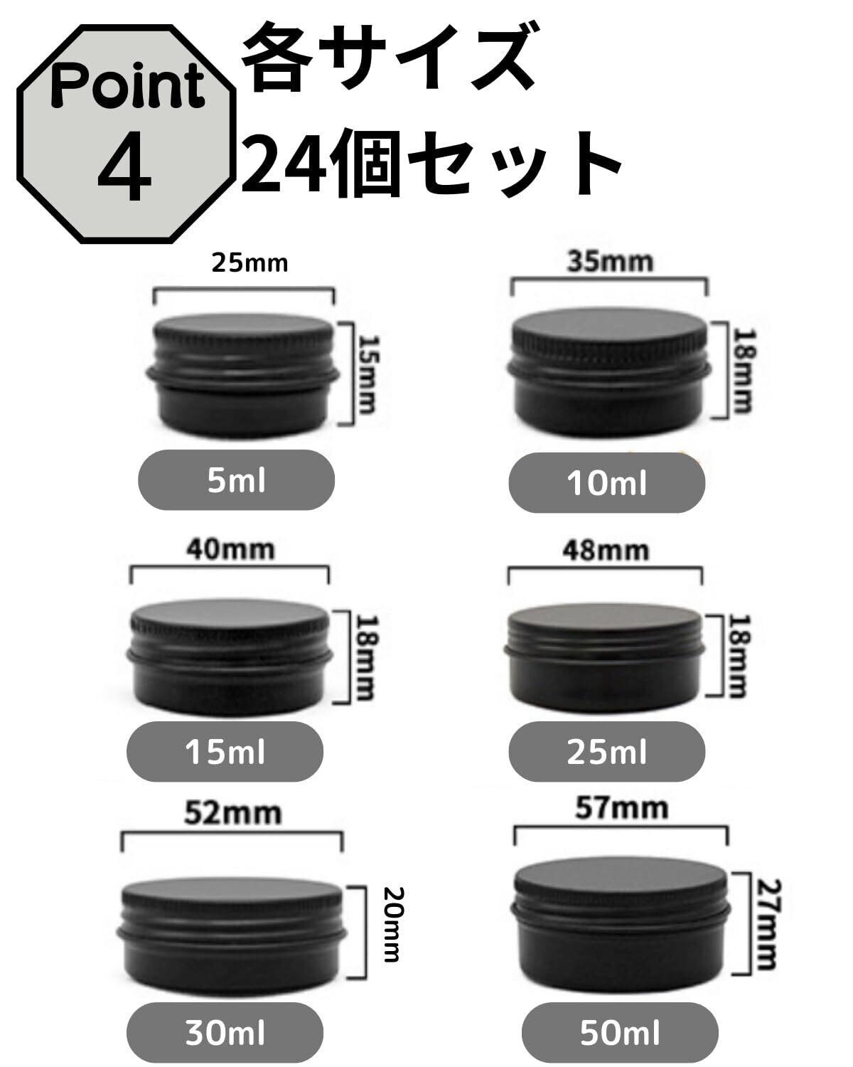 Chocople アルミ缶 アルミケース クリームケース アルミジャー 化粧品 アルミ 容器 小分け ブラック 24個セット (10ml)