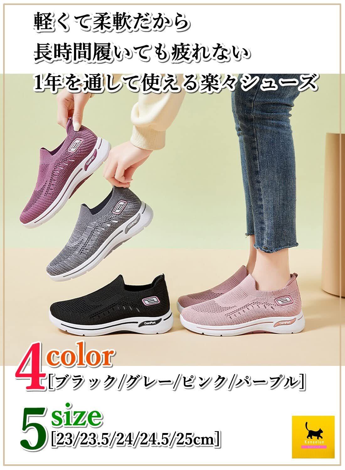 [kanaelun] [カナエルン] スニーカー レディース スリッポン より通気性を高める側面のデザイン 軽量 屈曲性 防滑 ウォーキング 職場