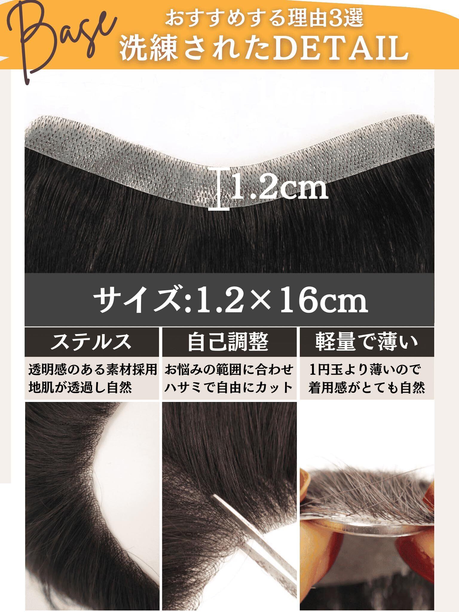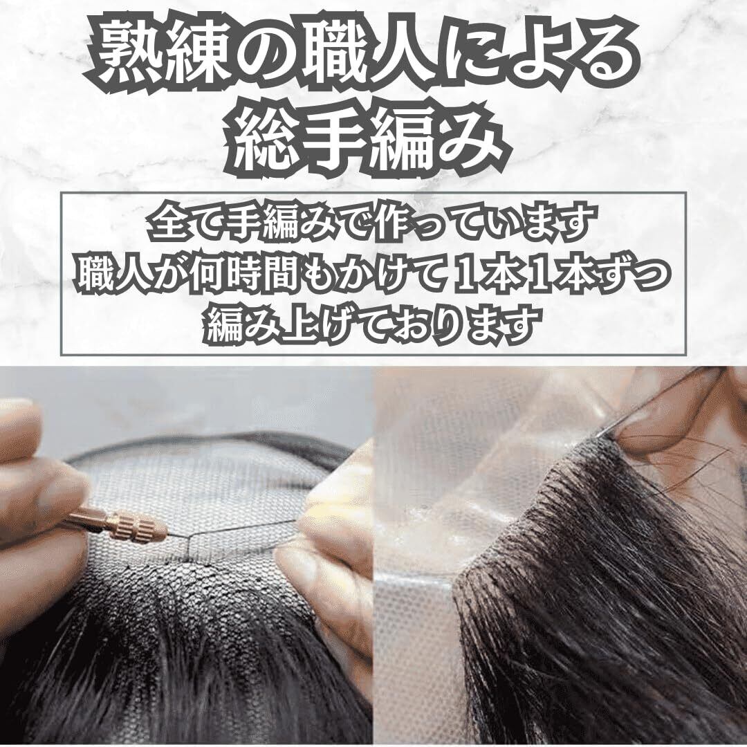 ?【総手植え】⑧特徴:植毛方法にもこだわり、職人による総手植えでナチュラルな生え際です。高級人毛100%の為、ヘアアイロン、ヘアカット、シャンプー、ドライヤーも使用可能です。
