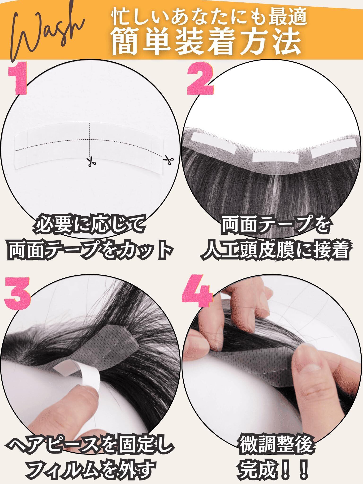?【商品概要】①状態:新品未使用品。 付属品:ピタッと増毛シート、ウィッグ専用両面テープ10枚、日本語取扱説明書 (A. メンテナンス法、B. 髪の癖の取り方、C. 装着方法) ②サイズ:ストレート 髪の長さ 15cm シートサイズ:1.2×16cm ③重さ:約 4g ④カラー:ナチュラルブラック ⑤対象:メンズ レディース 男性 女性 医療用 プレゼント 中高年 ⑥用途: うぃっぐ ウィッグ かつら 部分ウィッグ