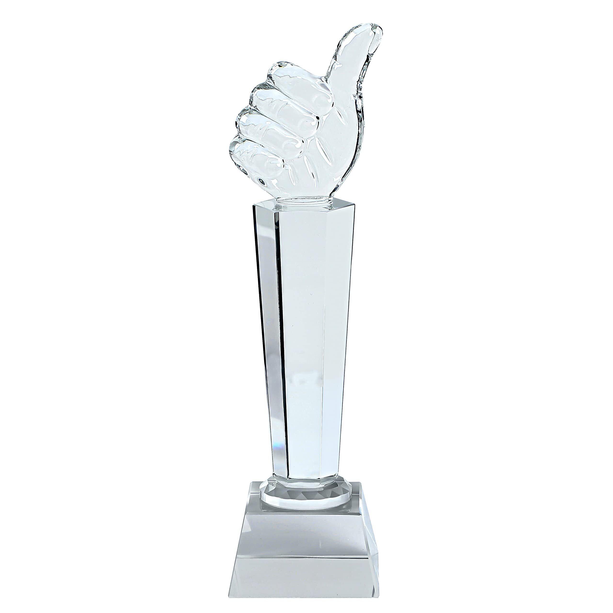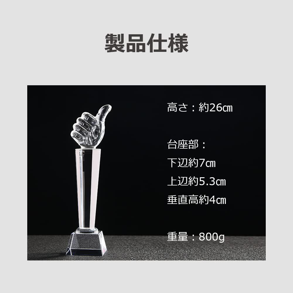 lifactlab. トロフィー いいね 優勝カップ 表彰 親指 パーティー 社内表彰 大会 コンペ 専用ケース付き クリスタル ガラス 高さ26cm