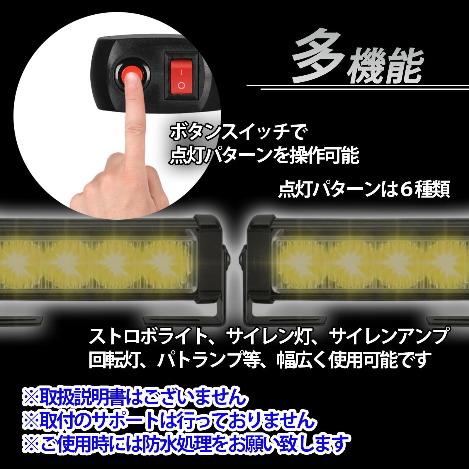 【多機能】このLED警告灯は、ストロボライト、サイレン灯、サイレンアンプ、回転灯、パトランプ、フォグランプ バイク 用としても使用することができます。また、点灯パターンは6種類から選べます。これにより、あらゆる状況に対応することが可能となります。