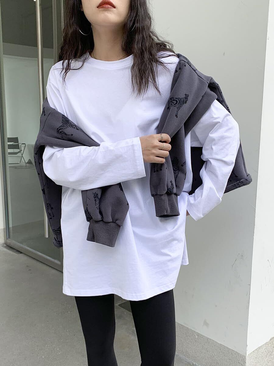 [レリカ] ゆったり ロングスリーブ tシャツ 長袖 ロンt 無地 シンプル カットソー トップス スリット 白 黒 レディース