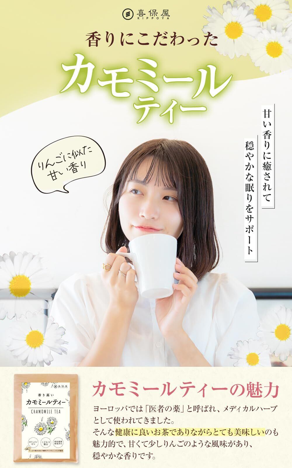 【カモミールの香りを最大限に】ハーブティーの代表格であるカモミールは香りが特徴です。そんな香りを最大限引き出すため、素材選びから製法までこだわりました。