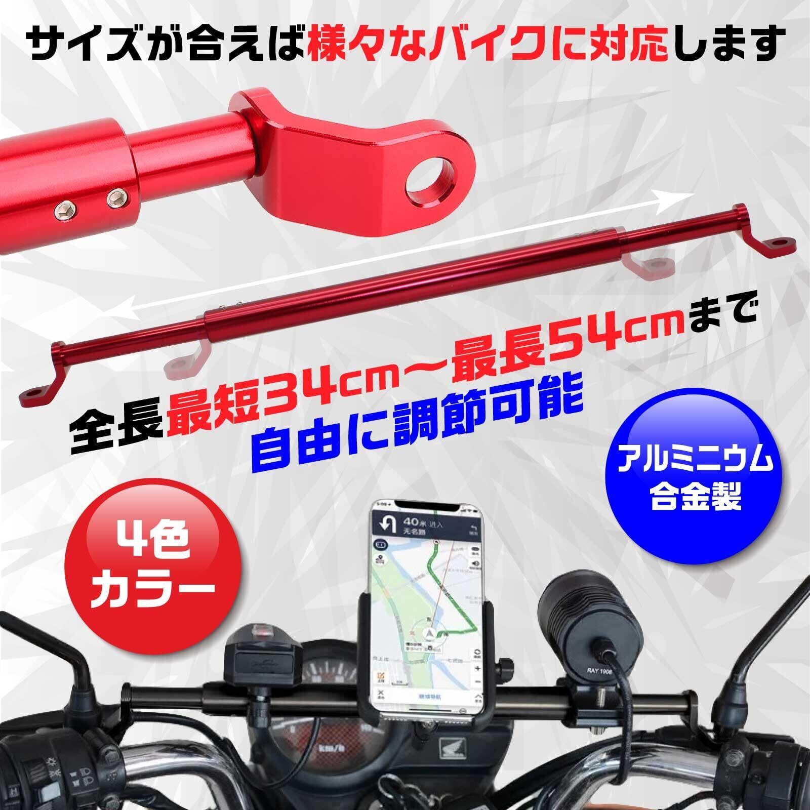 ? 【商品仕様】長さ調整可能【サイズ】 34cm〜54cm【材質】アルミニウム合金【クランプ径】2.2cm【ボルト穴】10mm【重量】310g