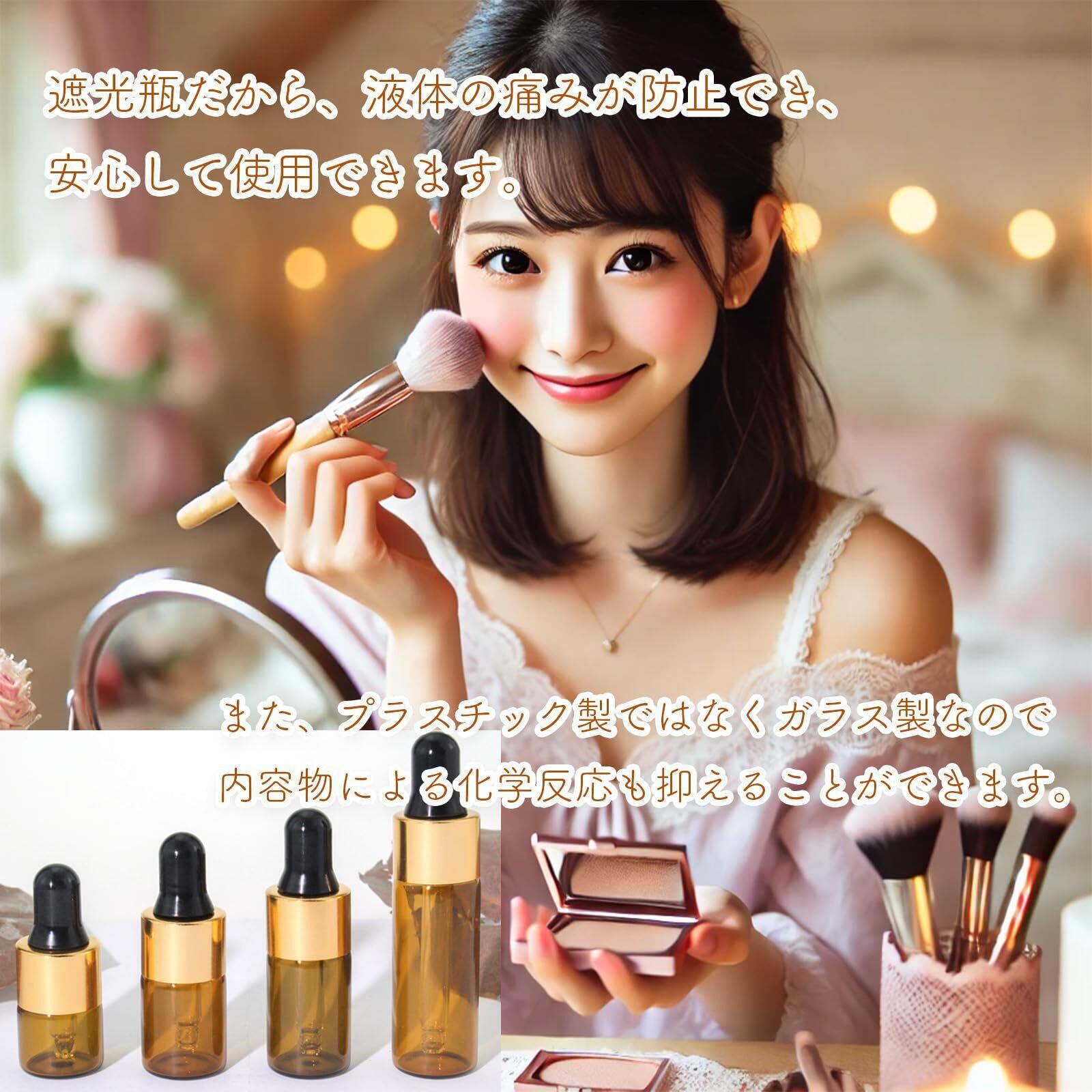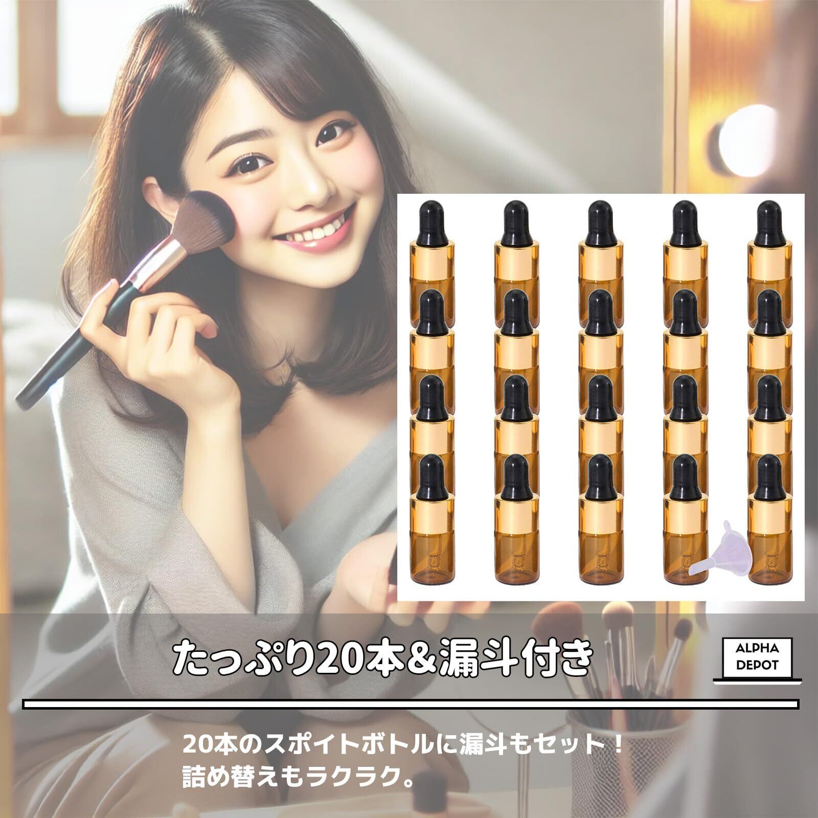 【在庫セール】Alpha Depot 遮光瓶 スポイトボトル アロマオイル 保存用 詰め替え ガラス製 漏斗付き (金蓋 ブラウン 2ml × 20個)