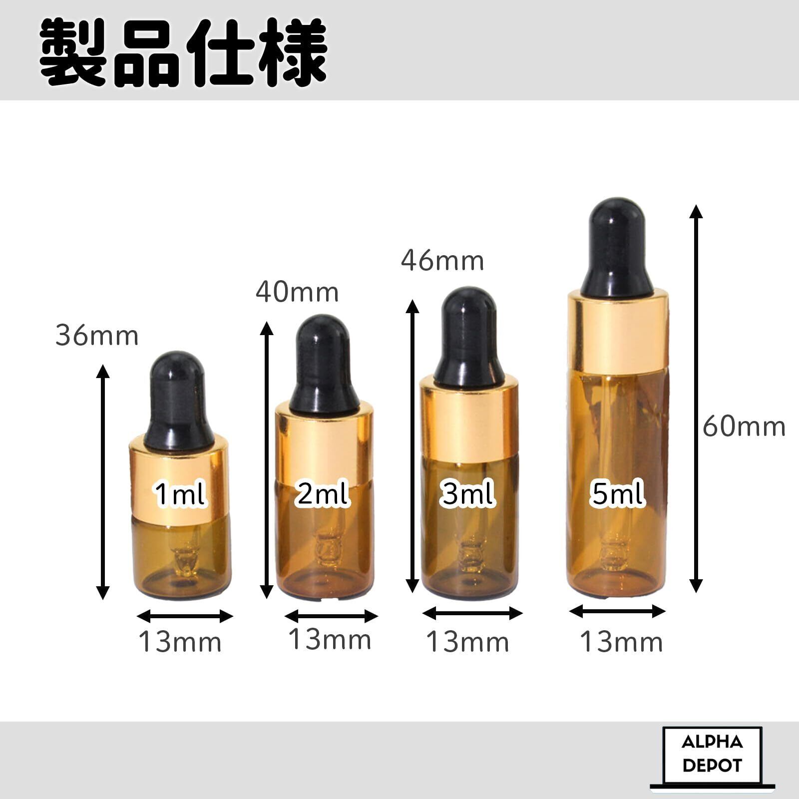 【サイズ】1ml:36 * 13mm / 2ml:40 * 13mm / 3ml:46 * 13mm / 5ml:60 * 13mm