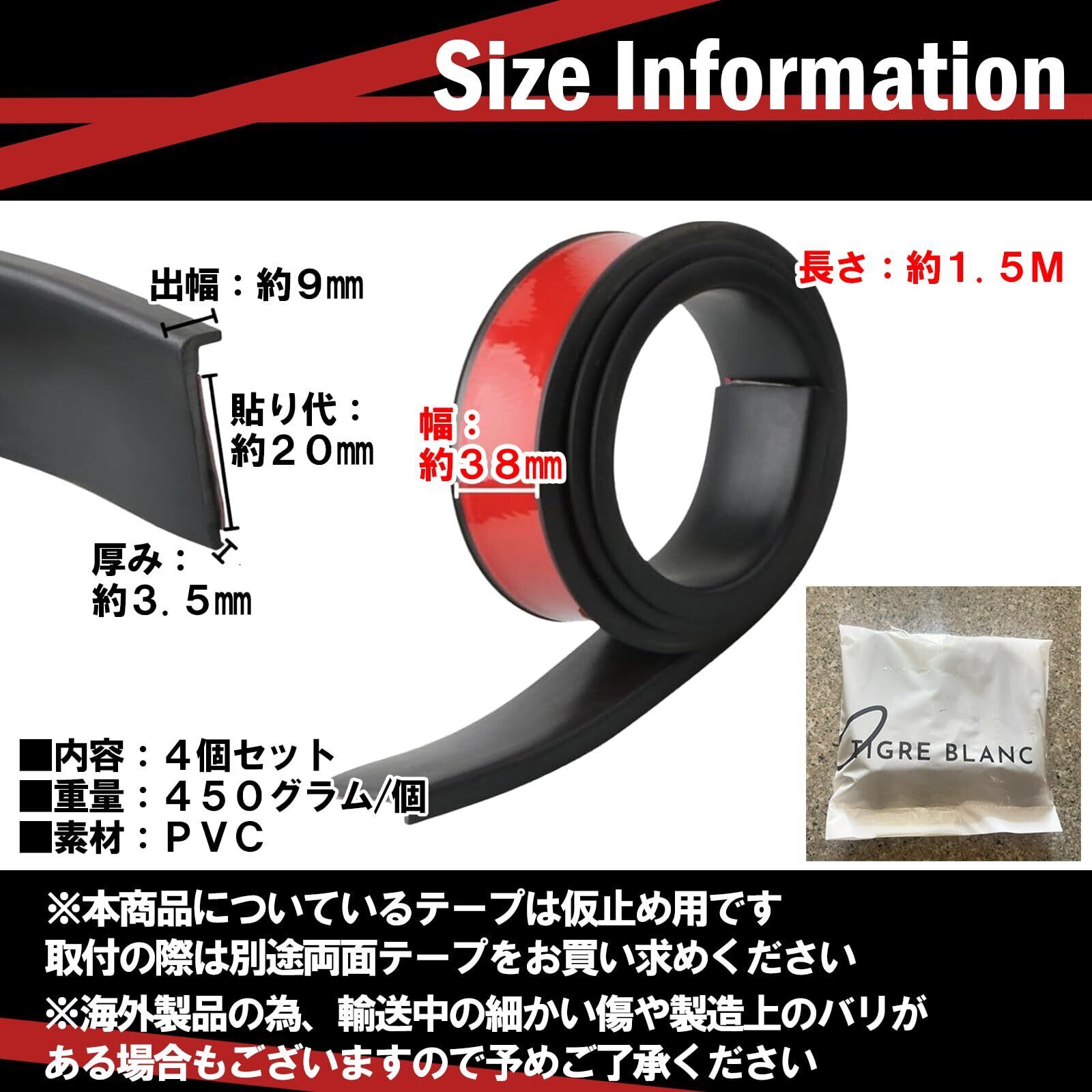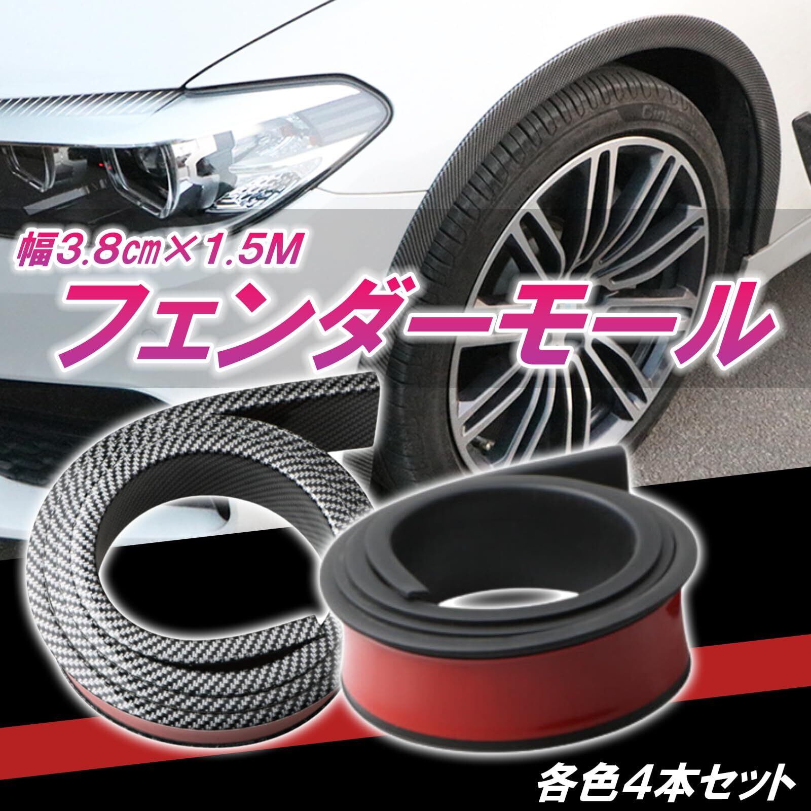 TIGRE BLANC フェンダーモール 汎用 オーバー フェンダー アーチ モール ホイール タイヤ ガード 150cm 4本 セット 幅3.8cm カーボン調