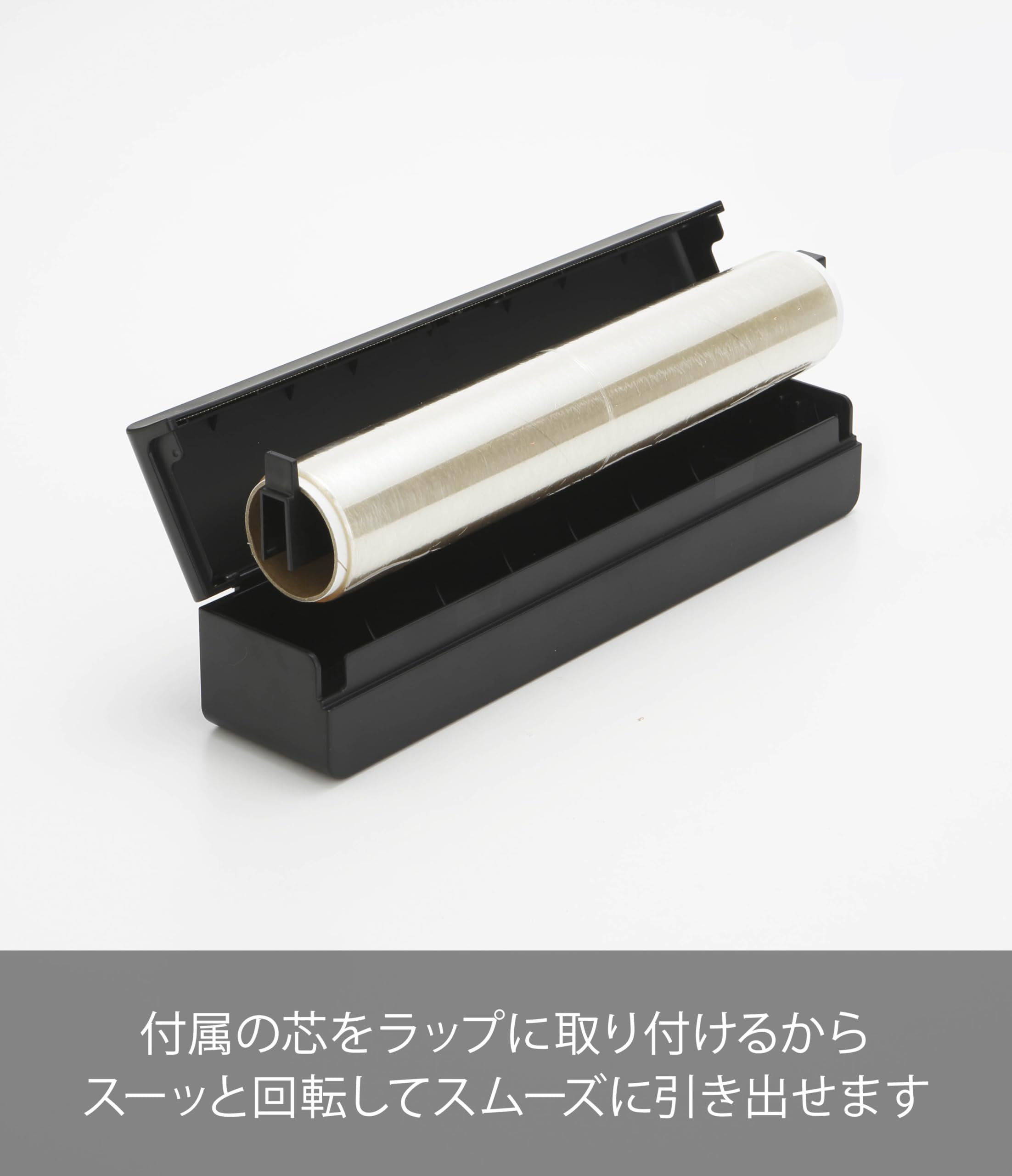 ラップを芯に取り付けるからスーッと回転してスムーズに引き出すことができます。