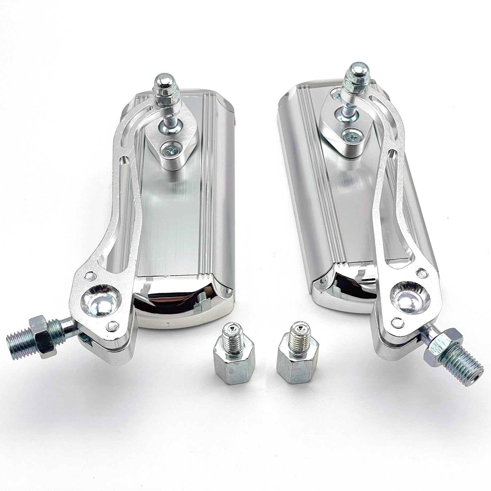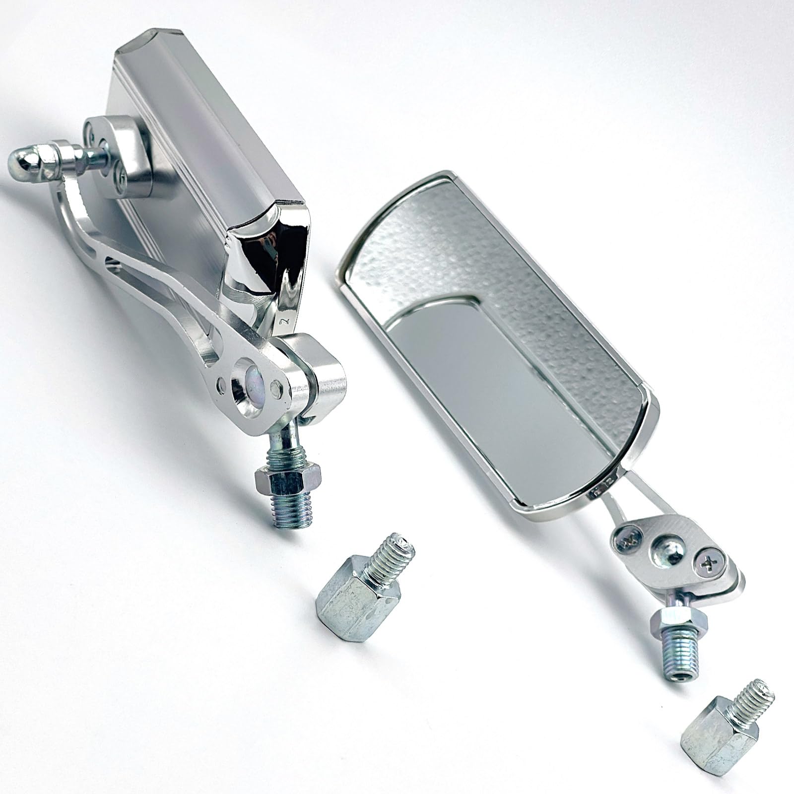 LEXOR クラシック アルミ スクエア ミラー 汎用 10mm 8mm アダプター2個付き 360度回転 調整 ダックス ジョルノ カブ PCX CBR Z125 GSX MSX KLX シルバー