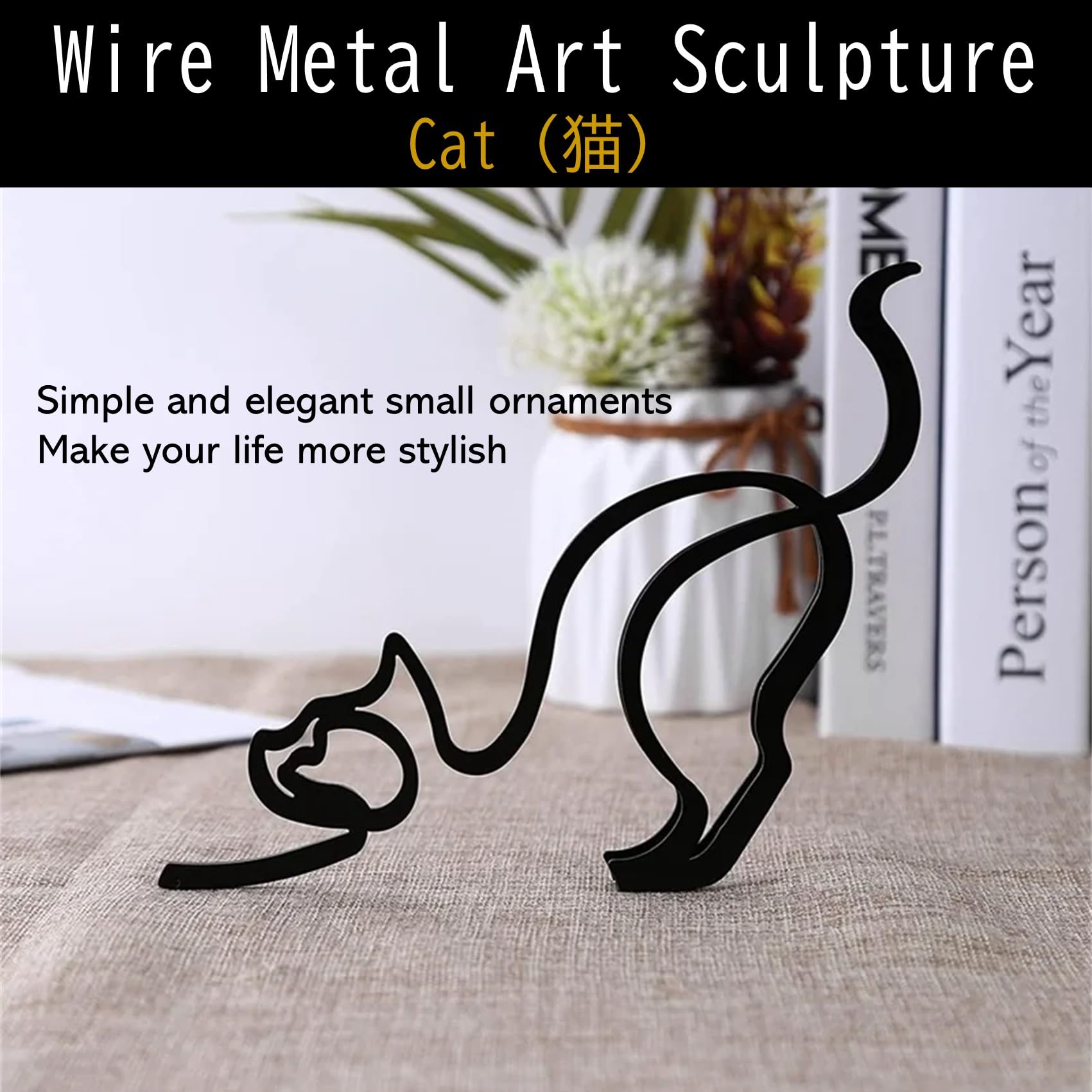 NOELAMOUR 置物 犬 猫 黒 インテリア 雑貨 おしゃれ 可愛い オブジェ ワイヤーアート 韓国 (猫)