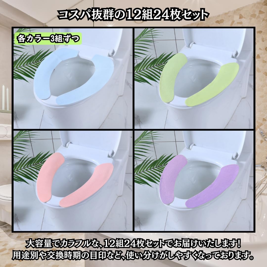 Charmoon 便座シート 便座カバー 貼るタイプ 使い捨て 持ち運び まとめ買い 北欧カラー 4色 12組24枚 セット