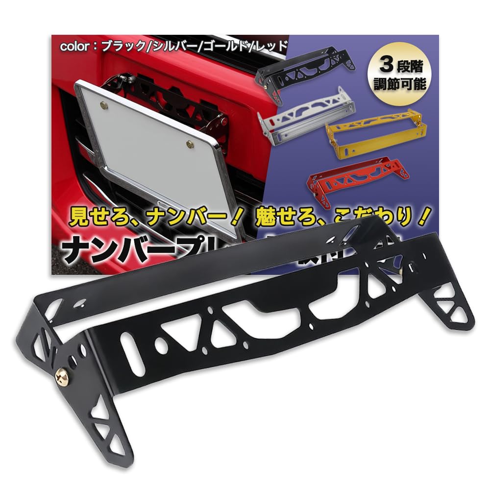 Nicheez ナンバーステー 車 ナンバープレート 角度調整 フレーム アルミ合金 ブラケット カスタム ドレスアップ ボルト付 (ブラック)