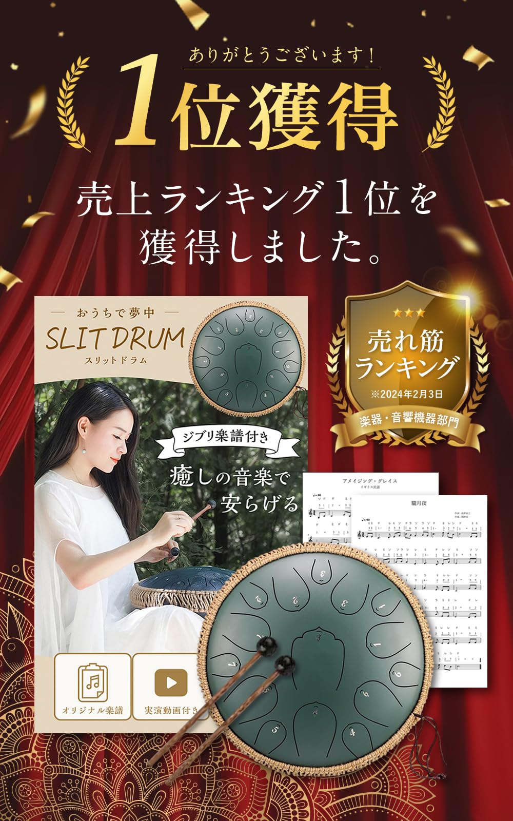 【ジブリ楽曲付き】ジブリミュージックより許可を頂き、スリットドラム用に編曲して演奏動画・楽譜をご用意しています。