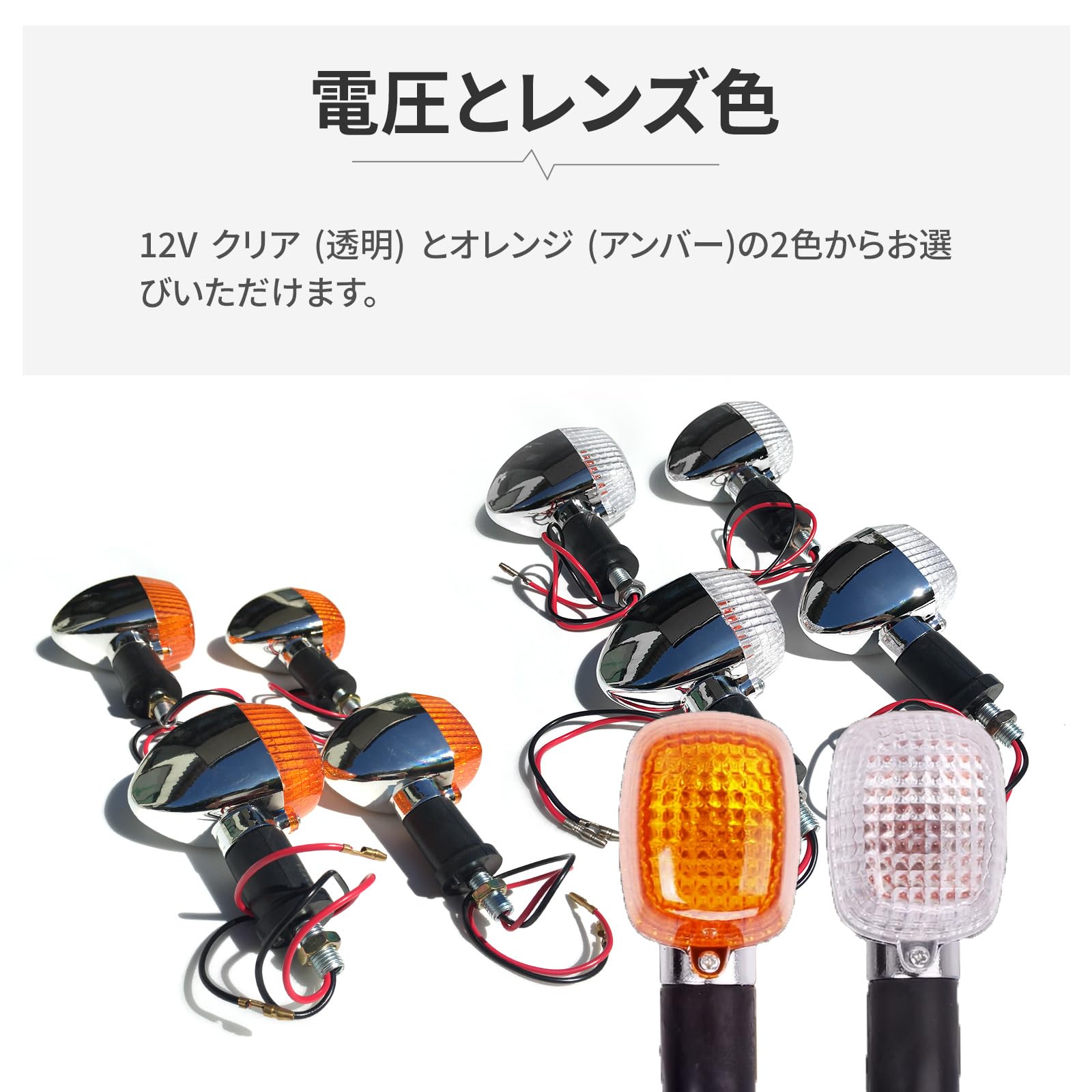 Archnote ウインカー バイク 用 汎用 リア フロント ウィンカー ランプ 12v メッキ レンズ オレンジ 4個 セット アンバー