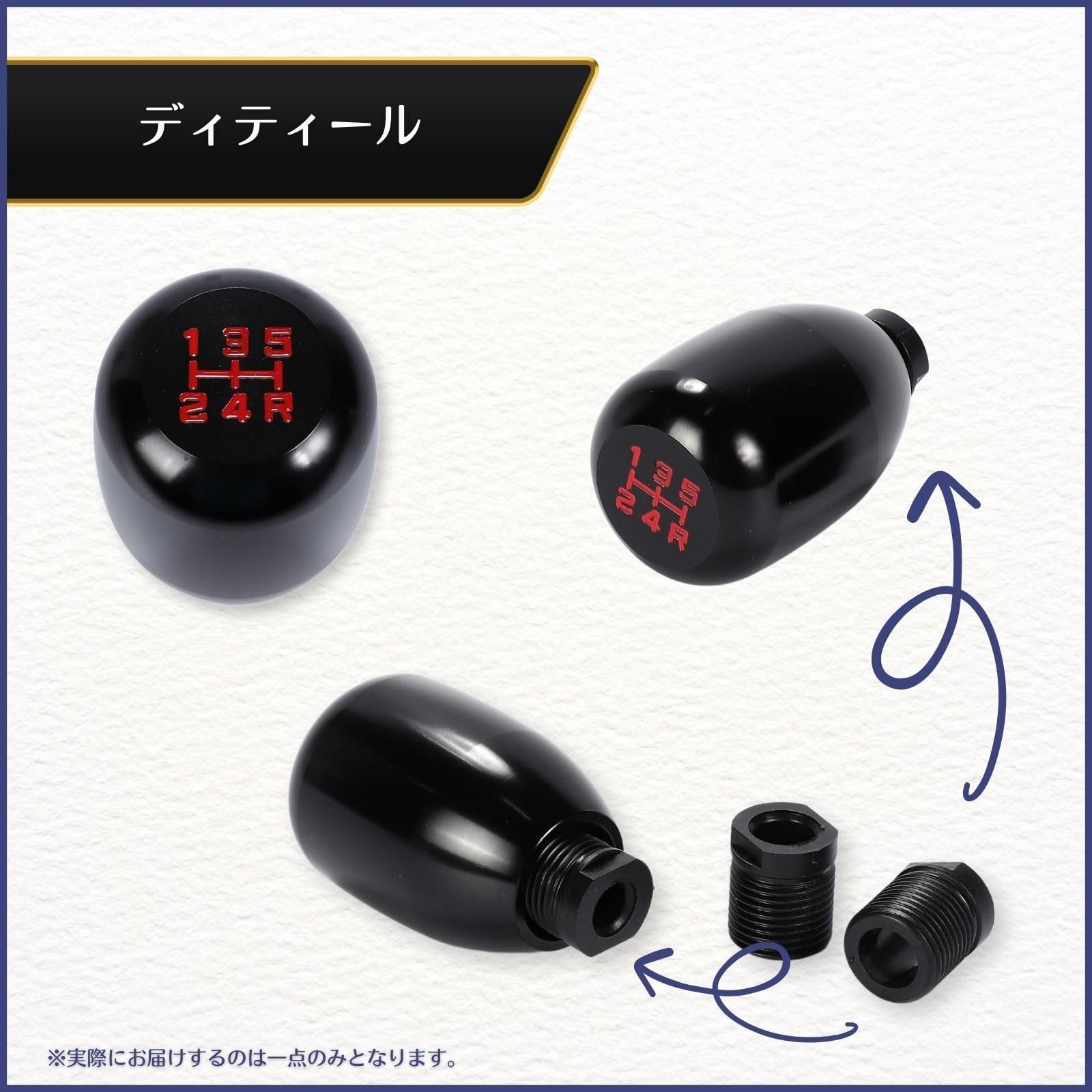 【スタイリッシュなデザイン】このアルミシフトノブは、車内を一気に高級感あふれる空間に変えます。5速マニュアル車に対応し、リバースが右下の一般的なシフトパターンが刻印されています。カラーは黒、赤、青、シルバー、紫の5色から選べます。