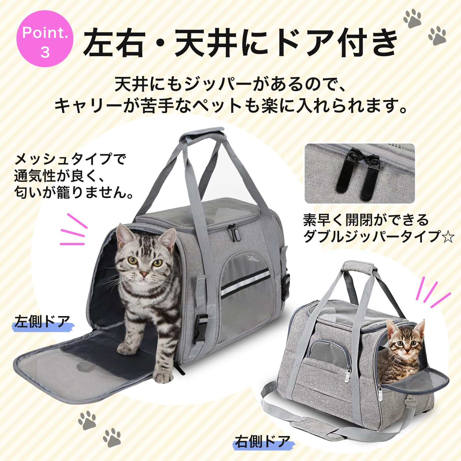 UB-Lab. 猫 犬 用 便利グッズ ペット キャリー バック ショルダー 布 製 ストラップ ベルト 反射ベルト 付 ダブル ファスナー レディース メンズ