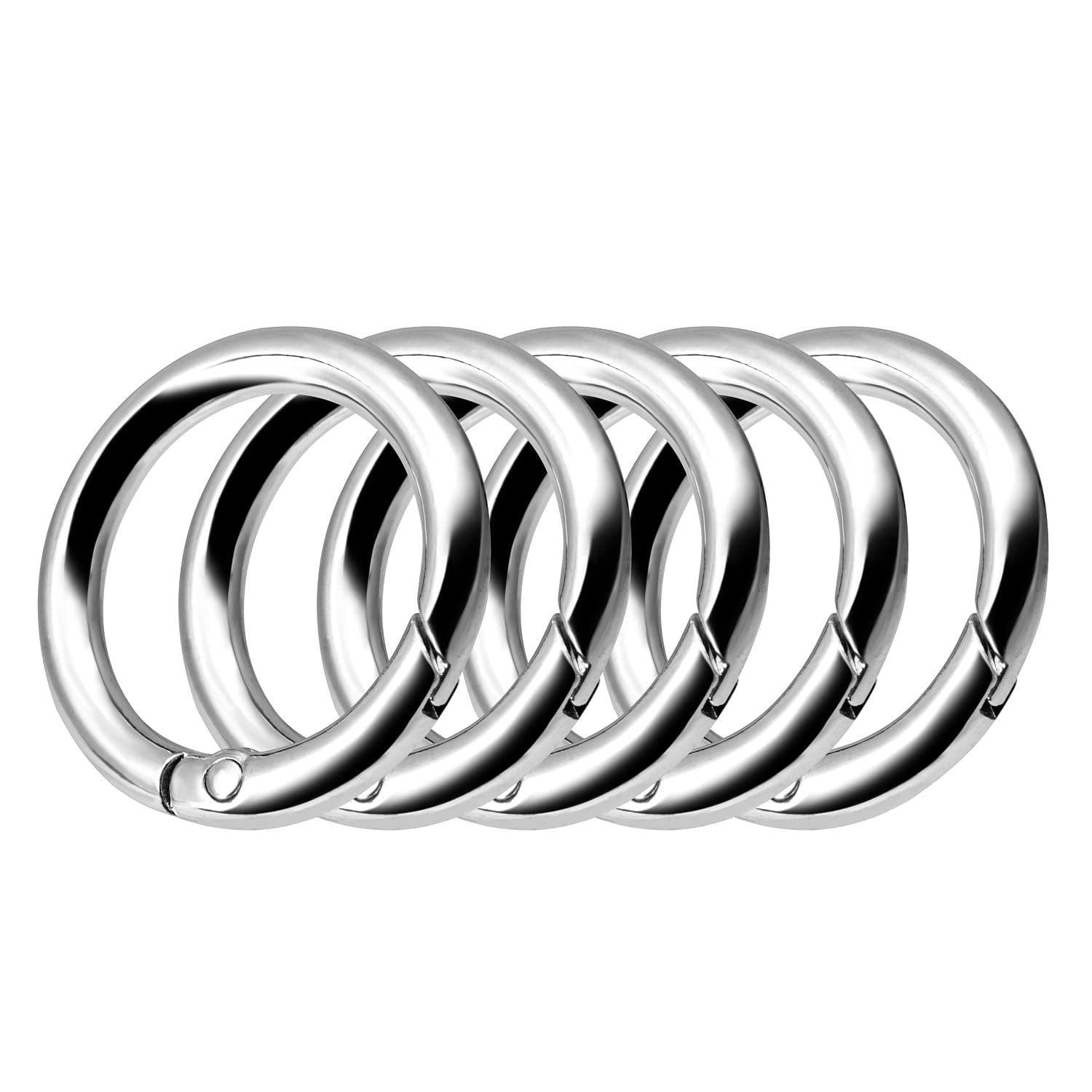 ?【オシャレな鞄等にも馴染むカラビナ】 外形:約30mm/内径:約22mm/線径:約4mm/重量:約6g(1個あたり)。角のない丸型デザインで、高級バッグに装着しても悪目立ちせず、元々のパーツのように自然に馴染みます。耐久性に優れた亜鉛合金にニッケルメッキ加工を施し、シルバー仕上げによって光沢感と耐食性を両立。清潔感と高級感を兼ね備えた質感に仕上げています。