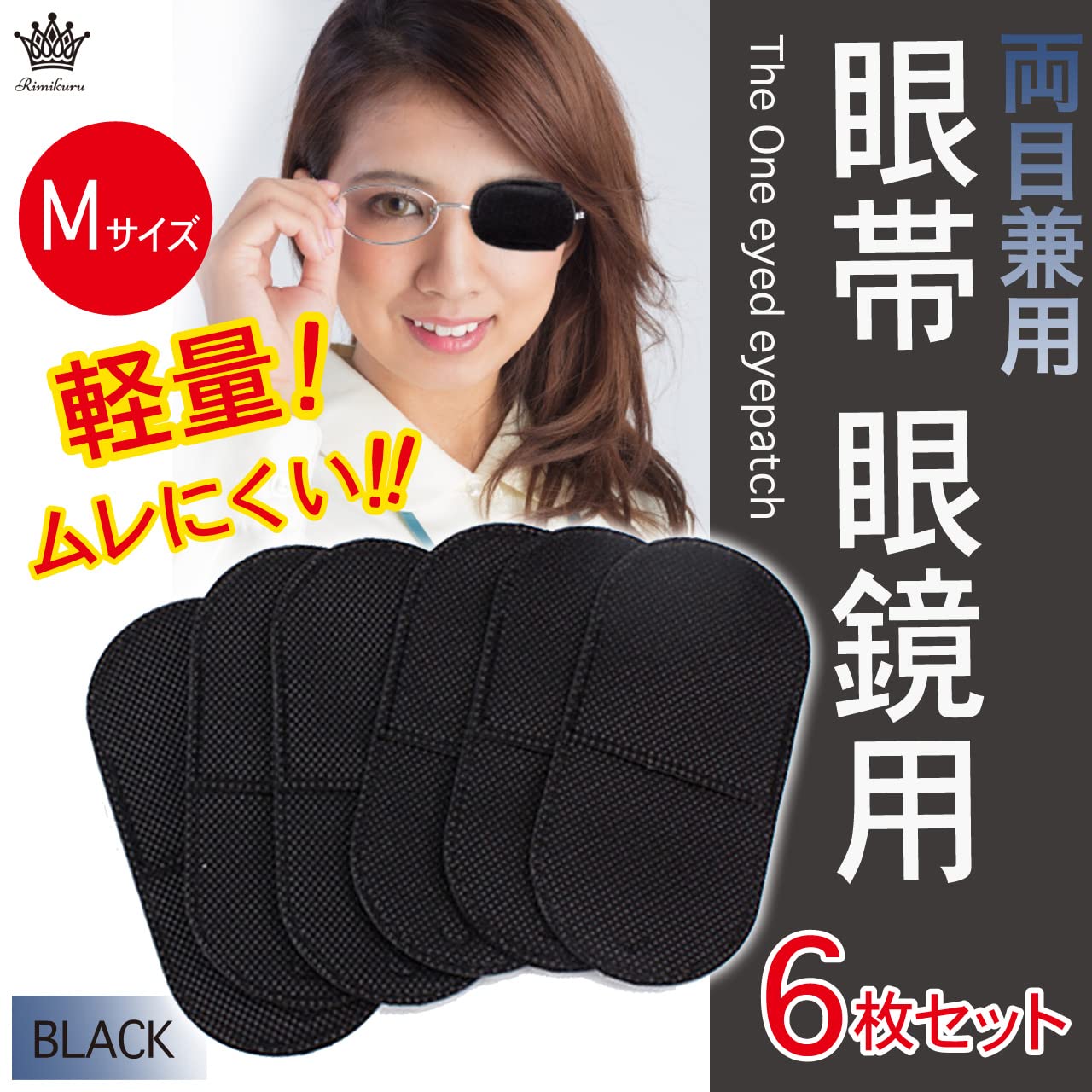 【新着商品】Rimikuru 眼帯 眼鏡 メガネ用 6枚/12枚入 斜視 メガネ カバー 右目 左目 アイパッチ 両目 片目眼帯 黒 (Mサイズ ブラック6枚入)