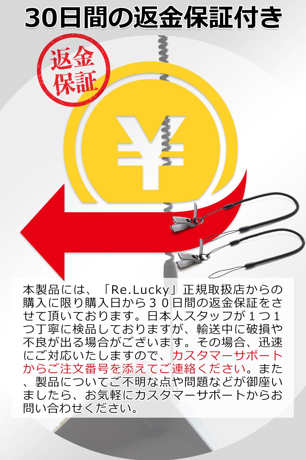 購入日から30日間の返金をつけさせていただいておりますので、安心してお買い求めください。