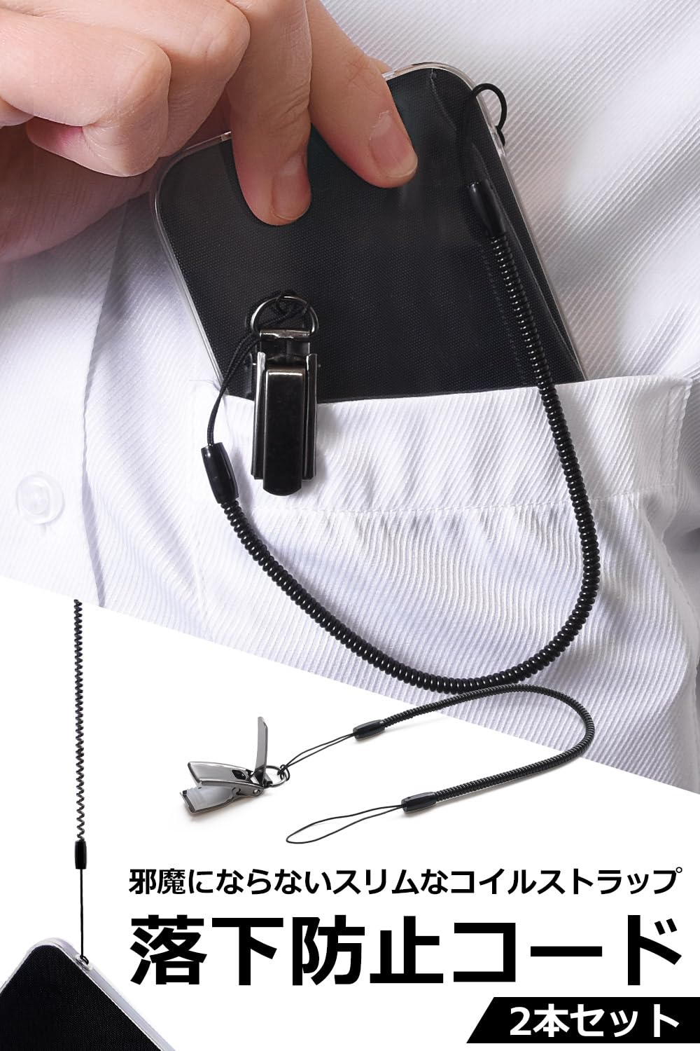 超スリムなコイルストラップ2本セットです。落下防止やカバン内での紛失防止に役立ちます。