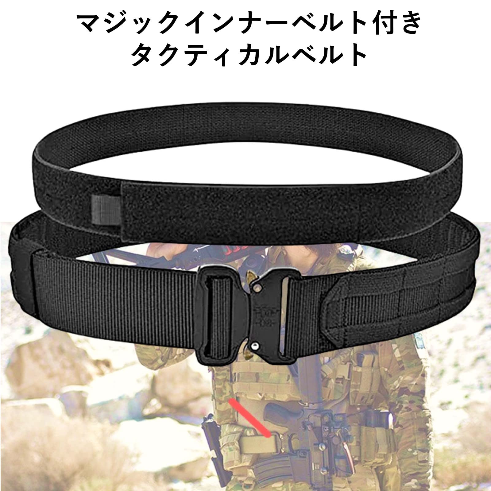 【商品仕様】 素材:ナイロン800D ベルト幅:マジックインナーベル/3.8㎝ タクティカルベルト/ベルト幅4.0㎝ セット内容:マジックインナーベルト&タクティカルベルトベルト 2点セット