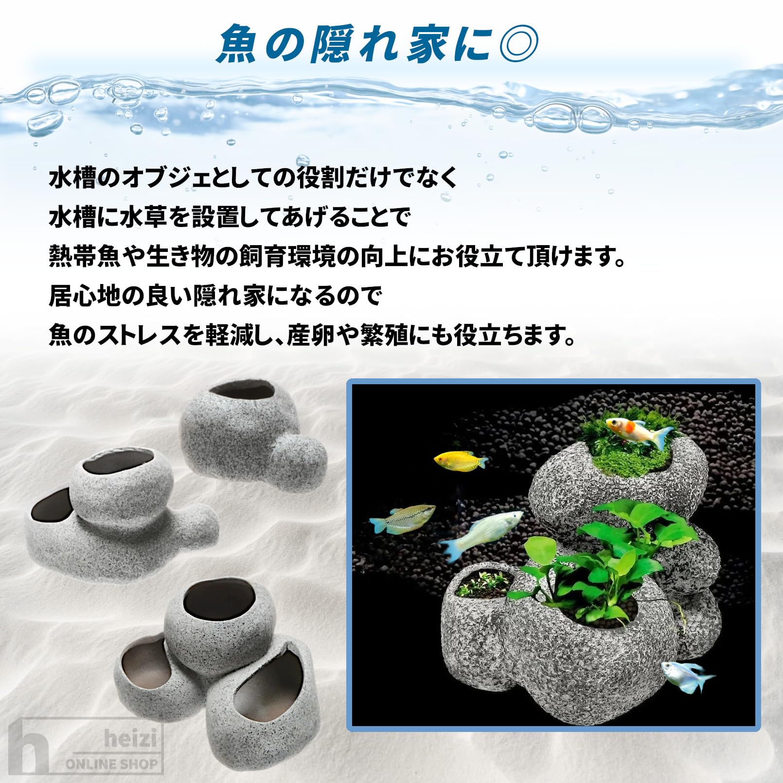 【新着商品】heizi 水槽 水草 鉢 ソイル 砂 付き 水槽ポット アクアリウム 石 オブジェ メダカ 熱帯魚 (3ホール 大)