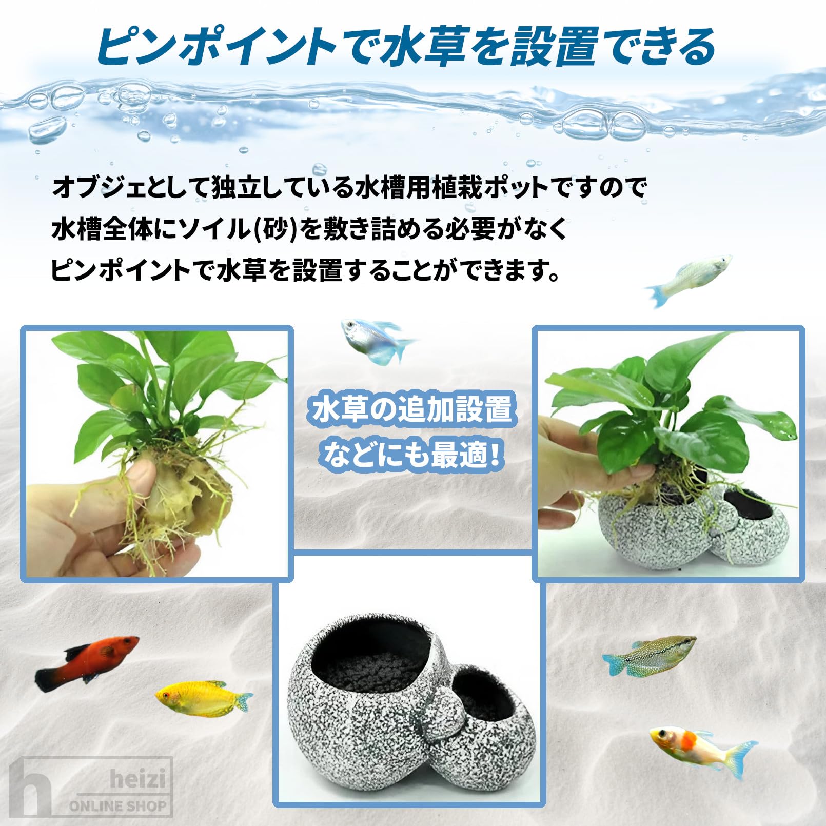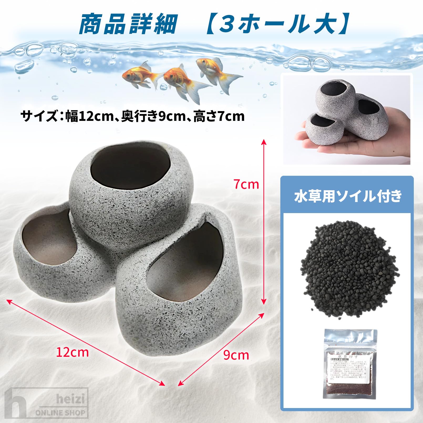 heizi 水槽 水草 鉢 ソイル 砂 付き 水槽ポット アクアリウム 石 オブジェ メダカ 熱帯魚 (3ホール 大)