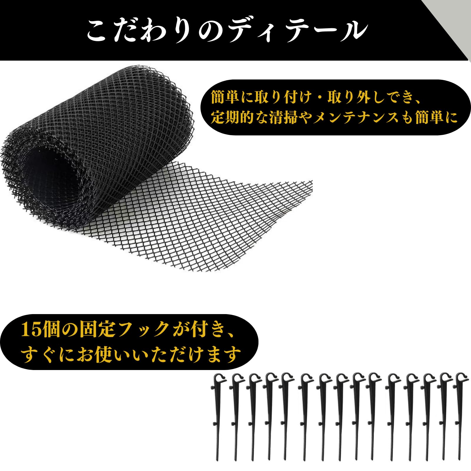 【セット内容】雨どいネット:1ロール 固定フック:15個 ●長さ : 6m 幅:16cm ●カラー:黒