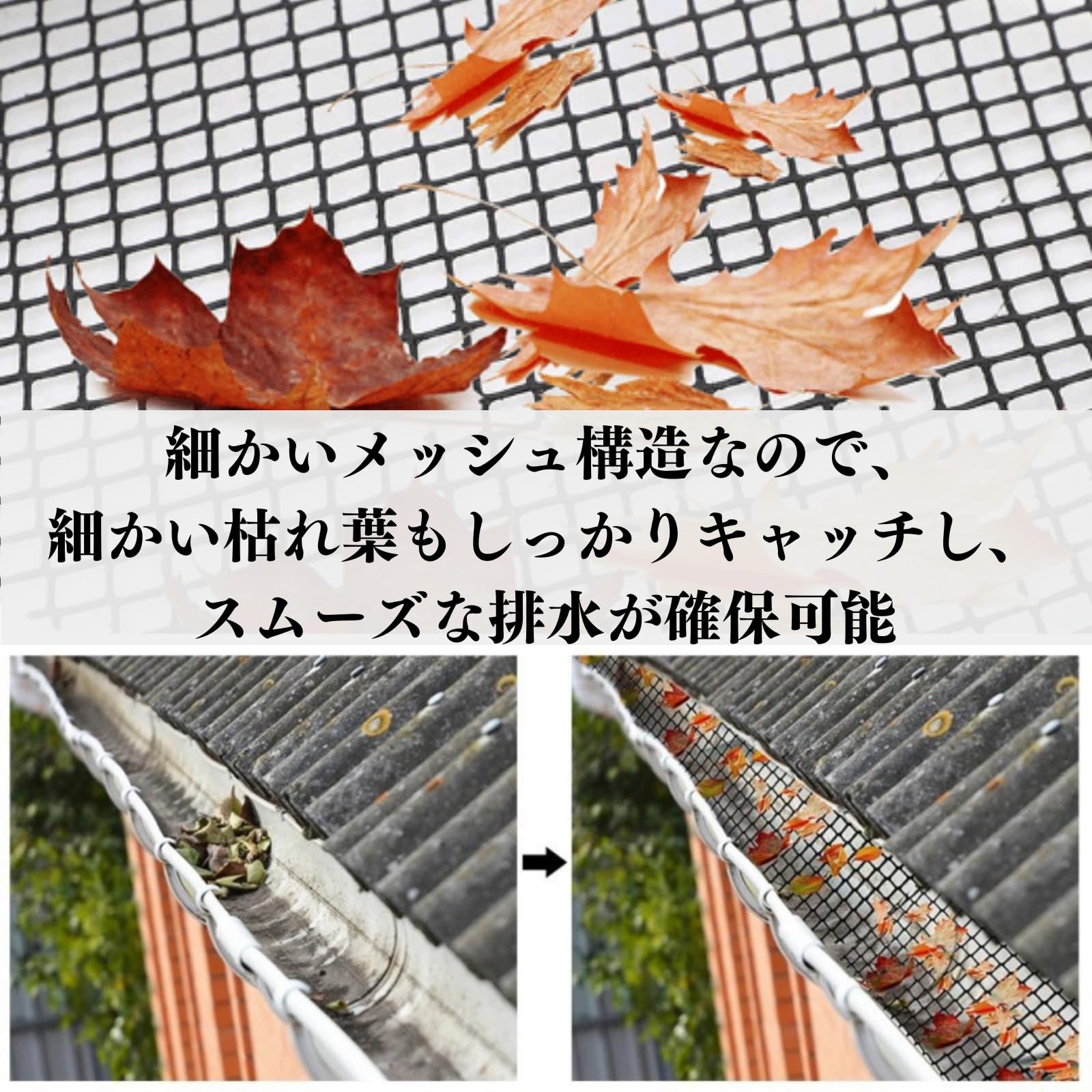 【雨どいネット】は、屋根の軒先部分に設置され、落ち葉やゴミなどが詰まるのを防ぐためのプラスチックメッシュが採用された雨どいネットです。