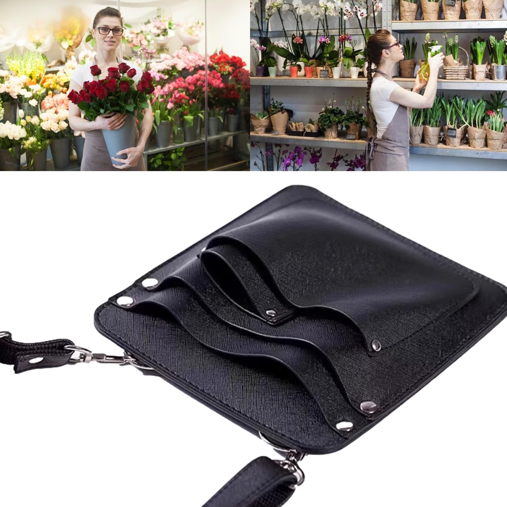 NOELAMOUR フローリストケース 花屋 シザーケース ガーデニング ポーチ 園芸 美容師 PUレザー (ブラック)