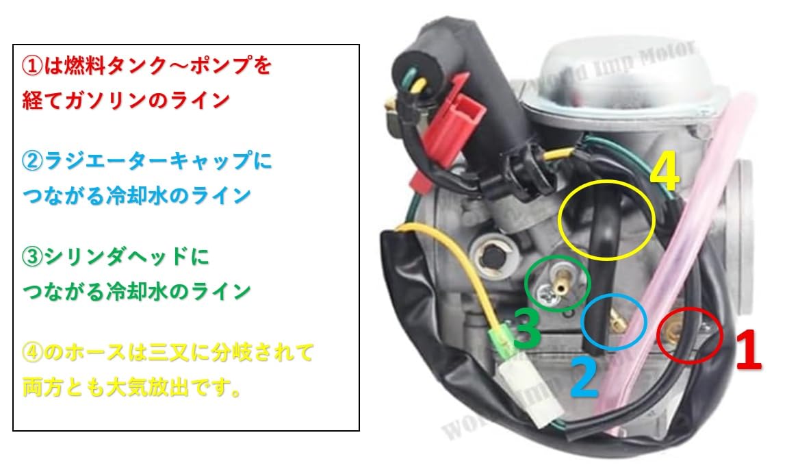 取付穴の位置やスロットルワイヤーの取り回しなどに注意を払ってください。