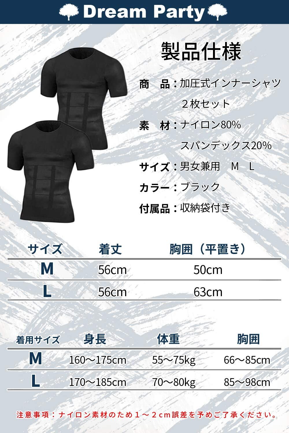[DREAMPARTY] 【理学療法士推奨】 強圧 加圧シャツ 加圧インナー メンズ レディース インナーシャツ 【2枚組】 加圧 インナー 男女共用 筋トレ インナーマッスル トレーニング 半袖