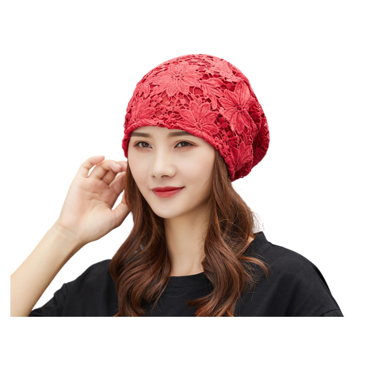 【通気性バツグン&涼しい】薄手のレース素材とニット生地の組み合わせで、蒸れにくく春夏も快適な被り心地。