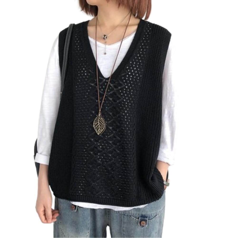 【新着商品】[RED RAY] [レッドレイ] ニット ベスト トップス 薄手 ロング 学生 メッシュ レース レディース