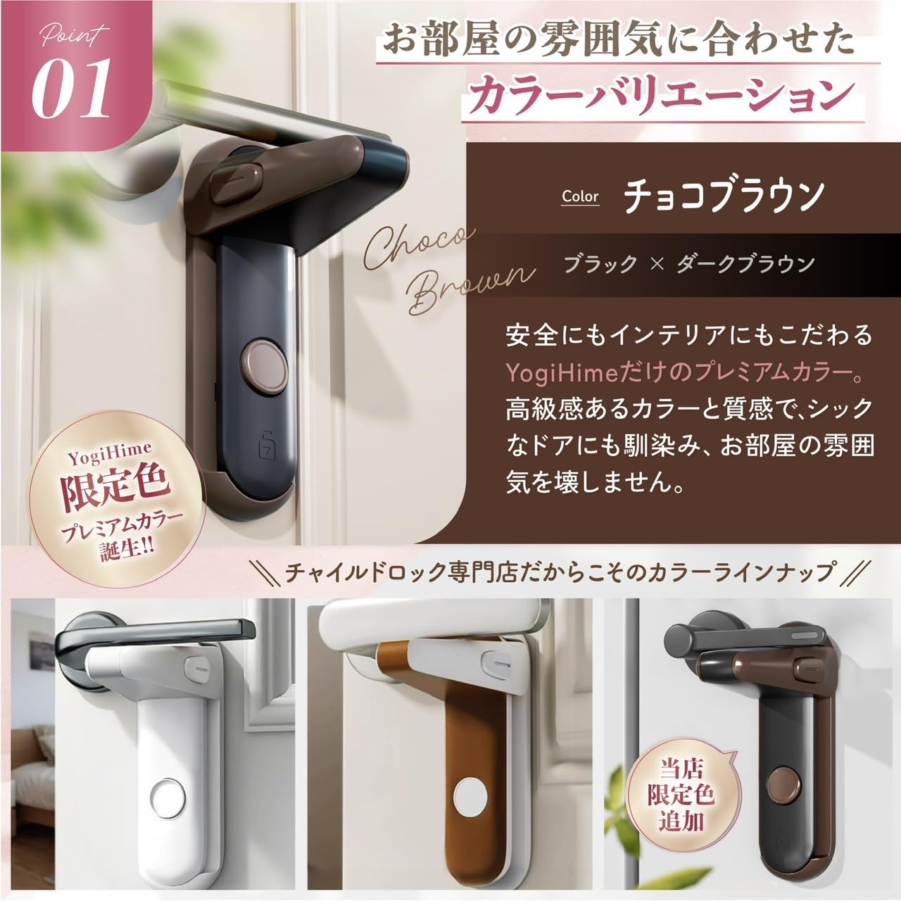YogiHime ドアロック ドアノブロック 部屋鍵後付け チャイルドロック 【日本の専門ブランド】ドア ロック 赤ちゃん 鍵 後付け 部屋 猫 脱走防止 安全ロック いたずら防止 (フルカラー日本語取り扱い説明書付き) (チョコブラウン2個)