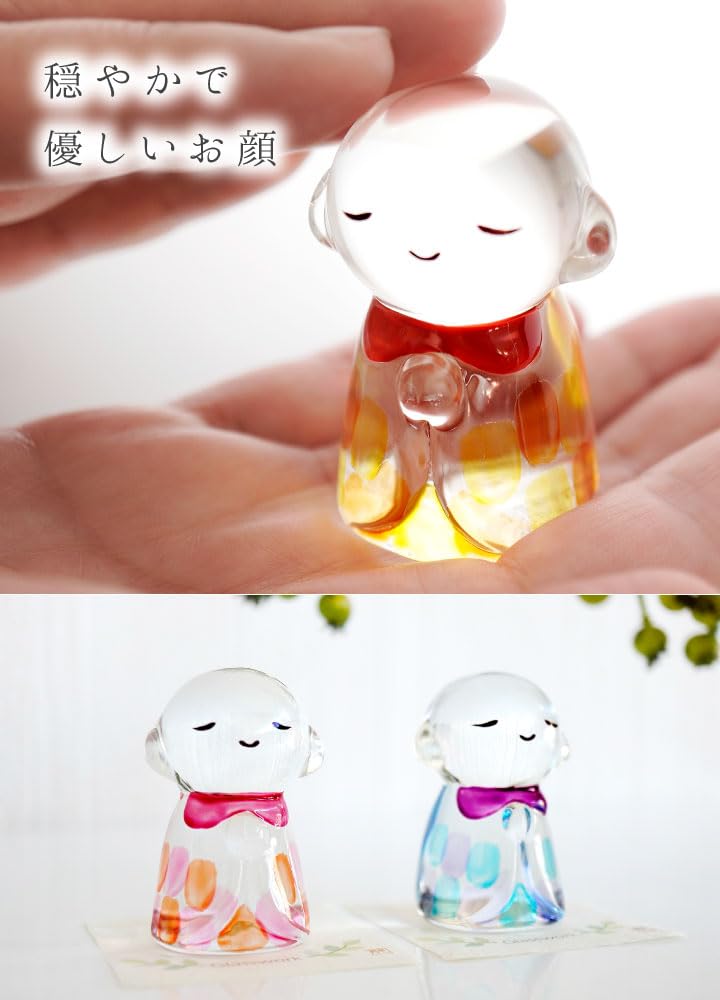 【在庫処分】仏具 クリスタル 彩 お地蔵さん ガラス オブジェ 置物 ミニ お供え コンパクト 小さい かわいい 可愛い 水子供養 手元供養 子供 赤ちゃん 透明 ガラス製 お祈り ミニサイズ おしゃれ 地蔵 仏像 (イエロー)