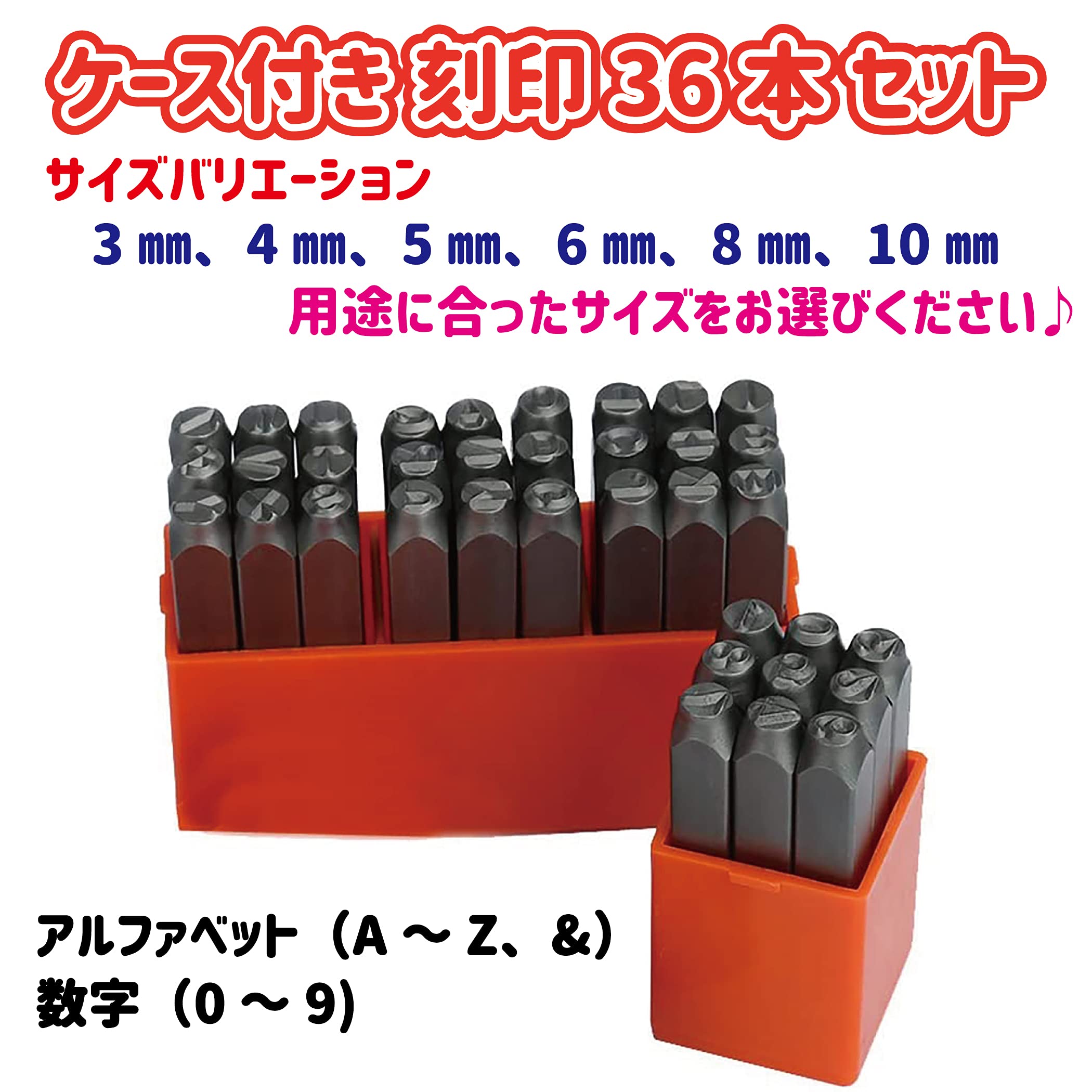 Lanx. 6mm 刻印セット 打刻印 ポンチ アルファベット 数字 英字 レザー クラフト カービング 手作り DIY 用 (6mm 英字+数字)