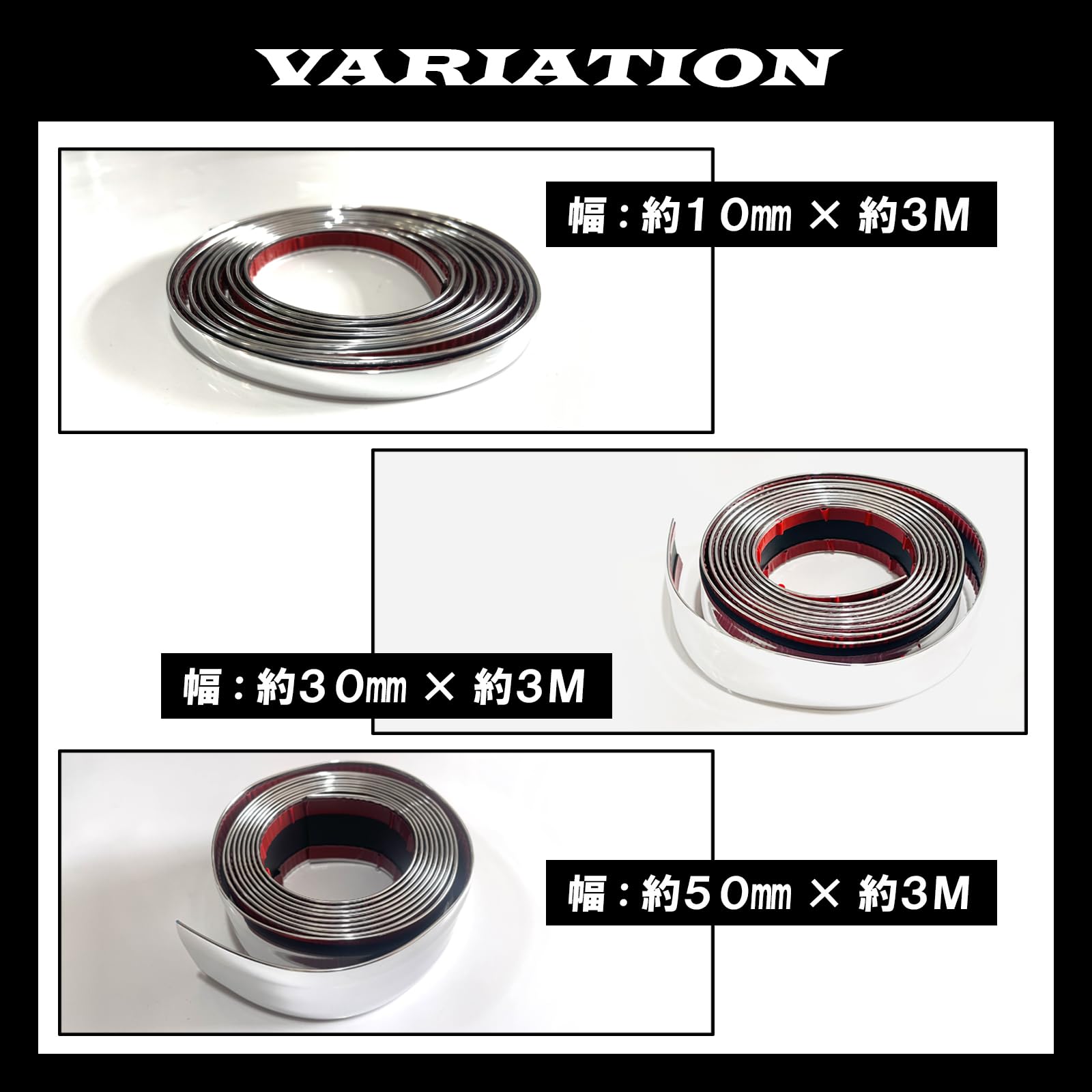 TIGRE BLANC メッキ モール シルバー テープ ボディ バンパー 汎用 プロテクター 保護 ドレスアップ PVC メタリック 幅 50mm 長さ 3m