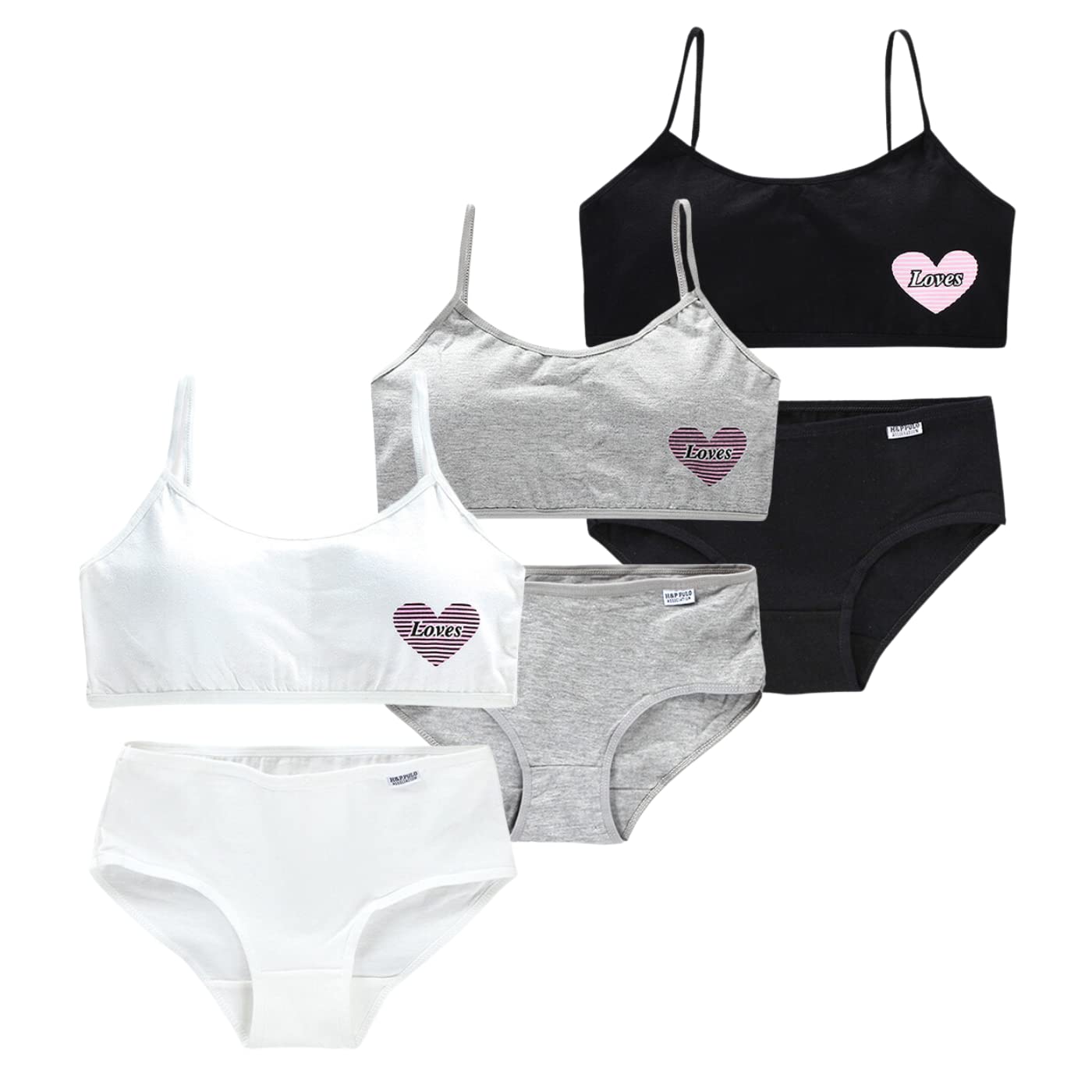 【特価セール】[FARFADET] ガールズブラ ハーフトップ セットアップ ジュニア ブラジャー ショーツ カップ付き インナー ハート 3色組