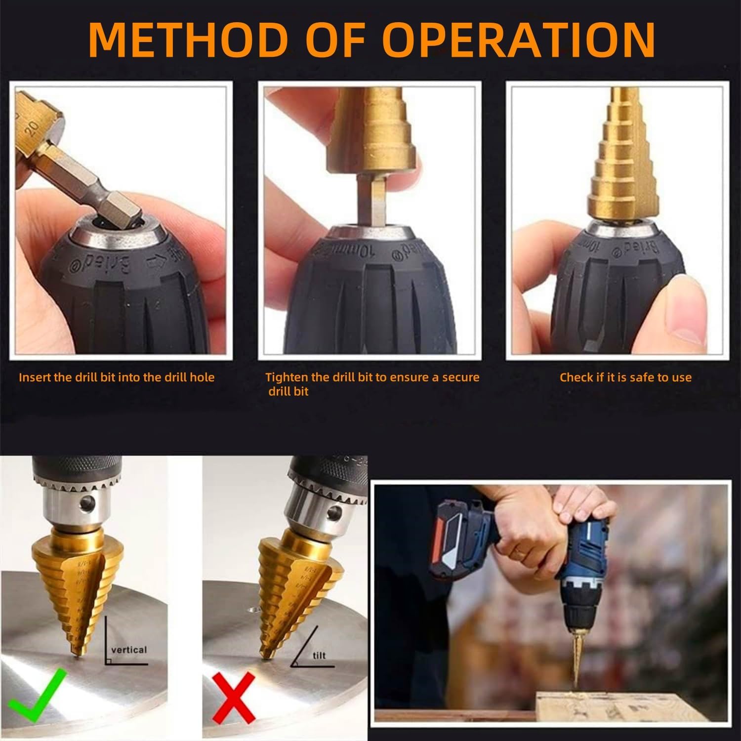 ?【パッケージに含まれているもの】ステップドリル3ピース(5ステップドリル:4mm ~ 12mm+9ステップドリル:4mm ~ 20mm+15ステップドリル:4mm ~ 32mm)+ツイストビット3ピース(3mm、 6mm、 8mm)+ケース