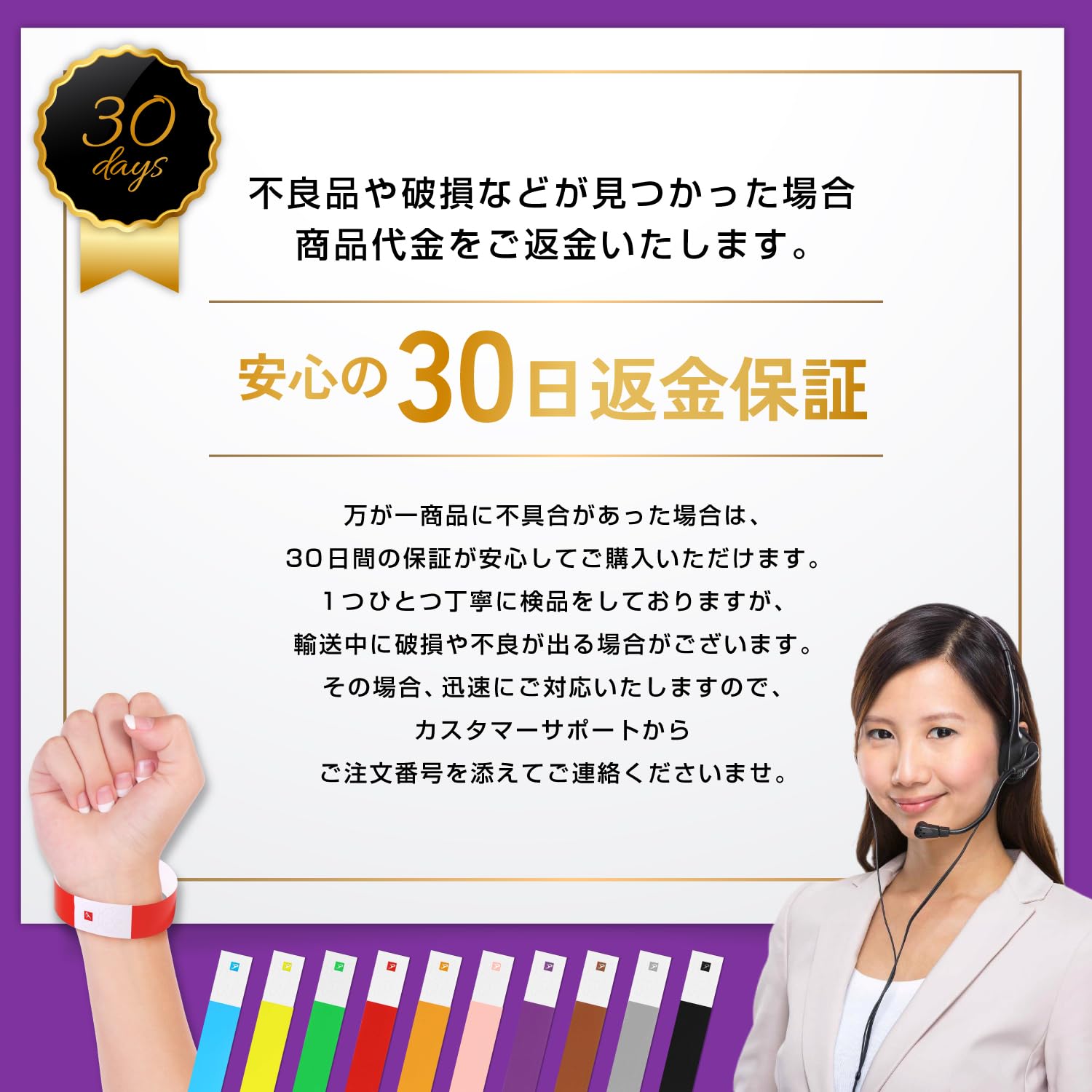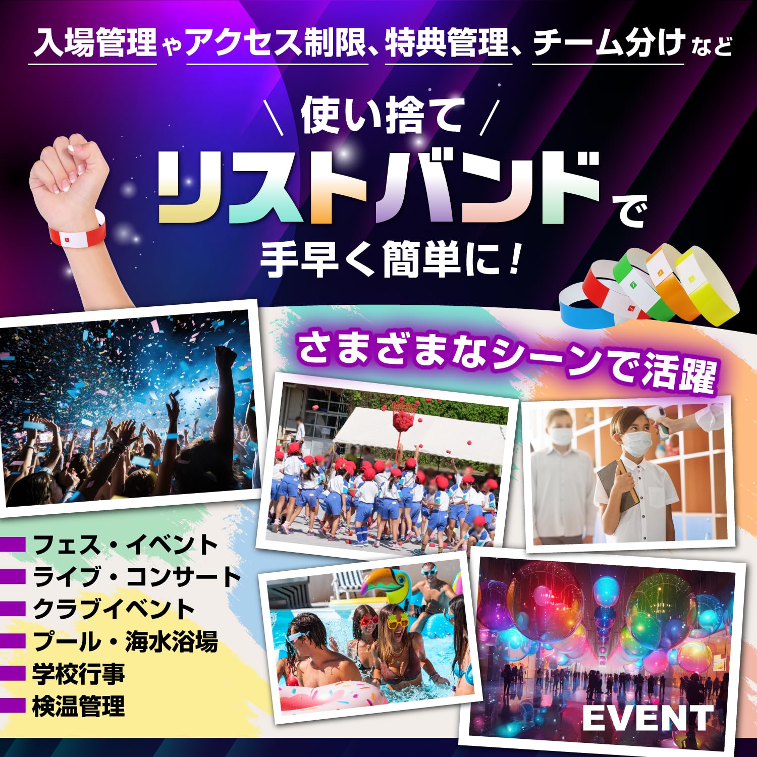 【新着商品】使い捨てリストバンド イベント用 入場管理 フェス ライブ スポーツイベント パーティー 遊園地 合成紙 防水 100枚入り 500枚入り 1000枚入り 10色選択可能 [SARUCO]